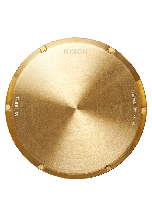 La Nixon 51-30 Chrono n'est techniquement pas 100 % étanche. Mais cela ne signifie pas qu'elle ne peut pas être portée dans l'eau ! Elle a une résistance à l'eau de 300 mètres / 30 ATM, ce qui signifie qu'elle est testée sous pression jusqu'à 300 mètres.