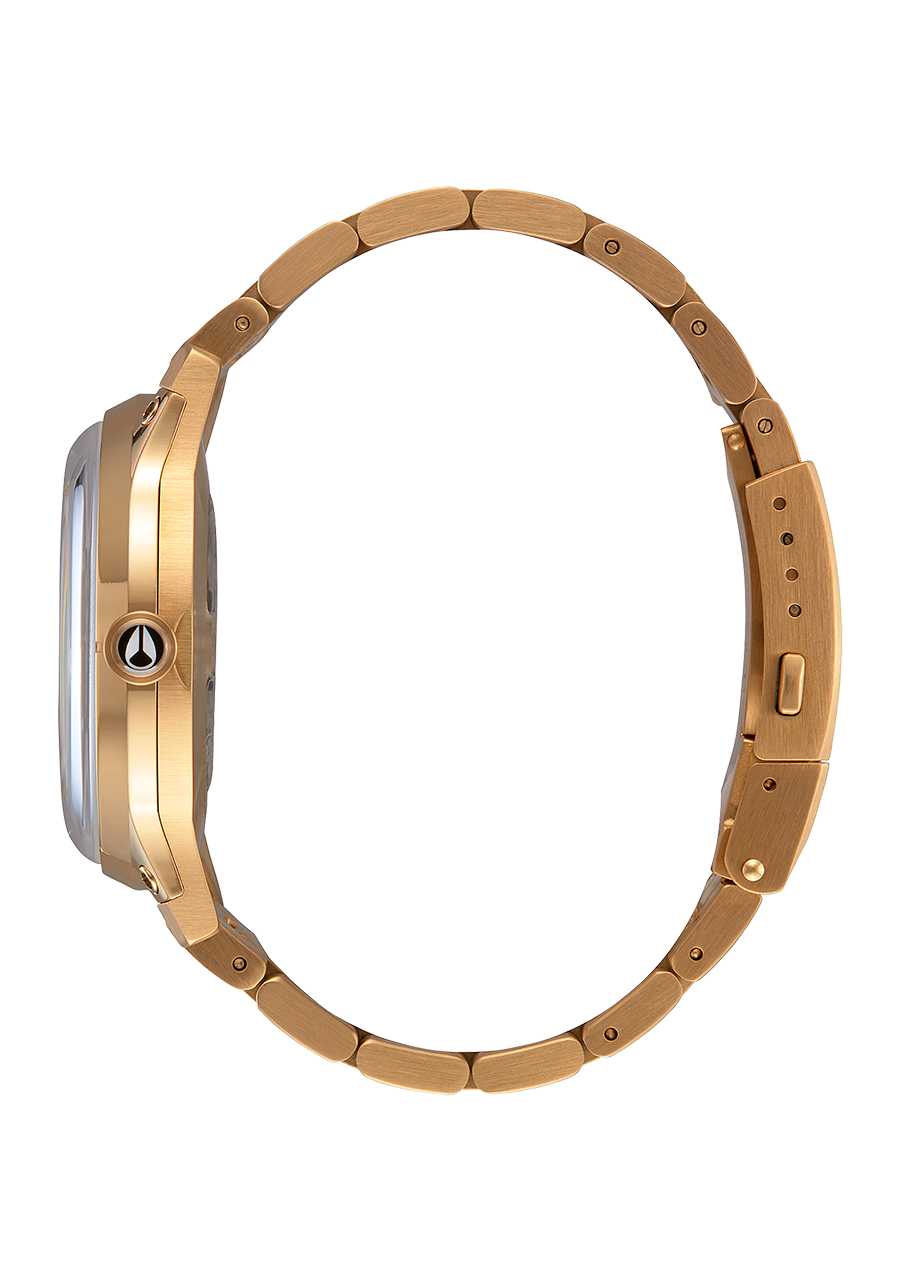 Le design unique en deux parties élimine le besoin d'un fond de boîtier traditionnel, tandis que la fenêtre fendue offre une vue sur le mécanisme interne du mouvement automatique et la forme personnalisée du verre s'intègre parfaitement au boîtier avec des bords angulaires. Le cadran bombé présente des index blocs LUME et des accents LUME sur les aiguilles pour une visibilité même en conditions de faible luminosité.