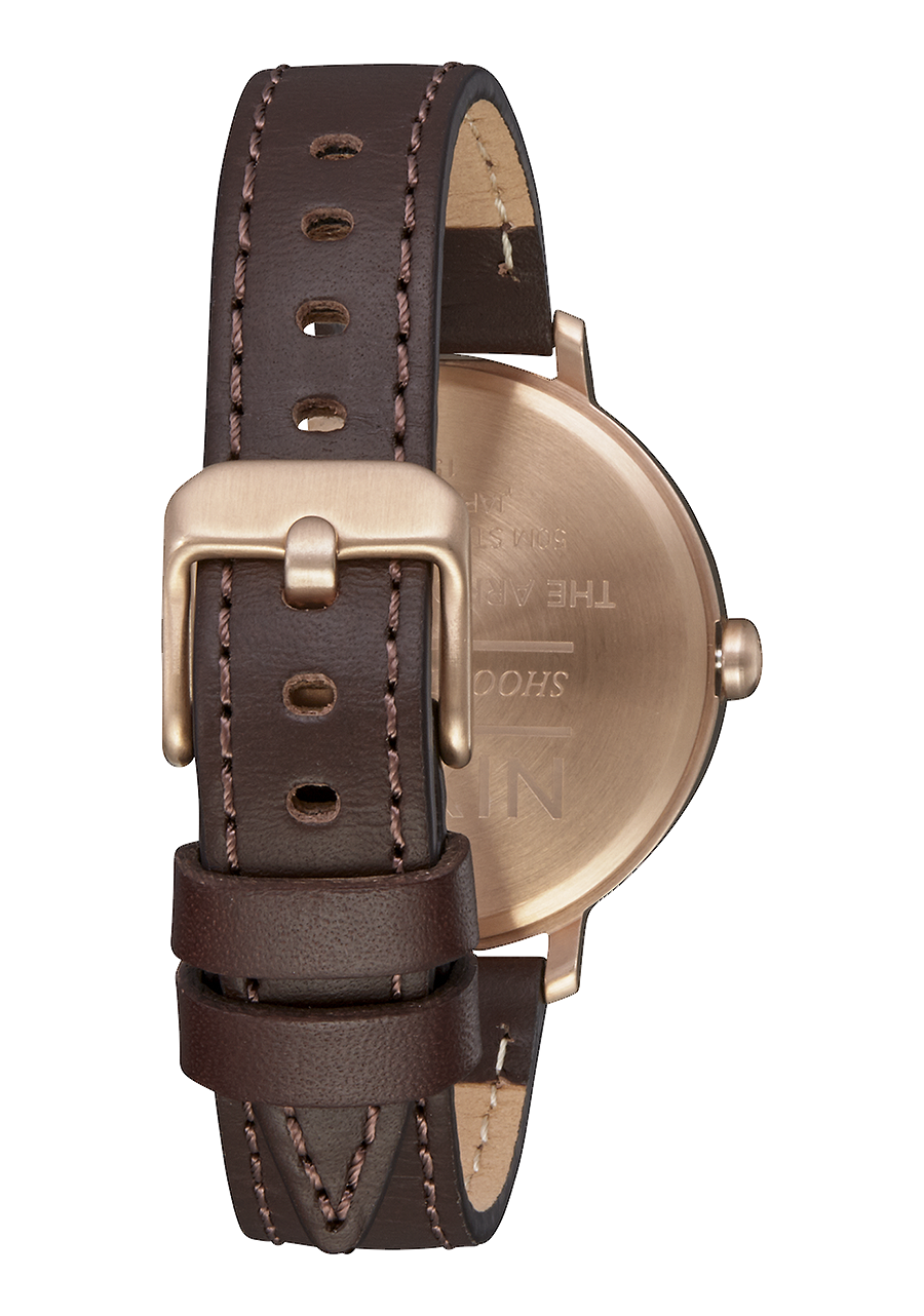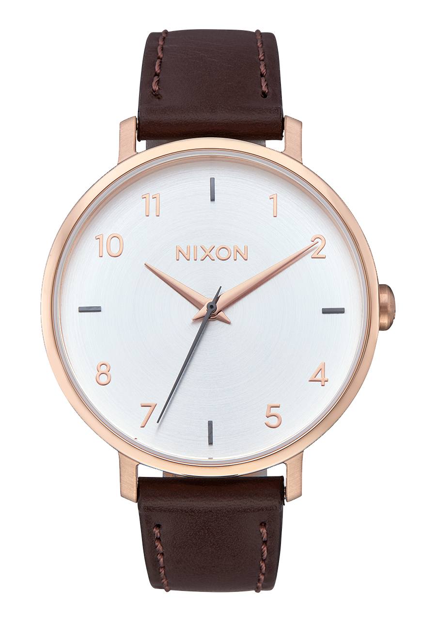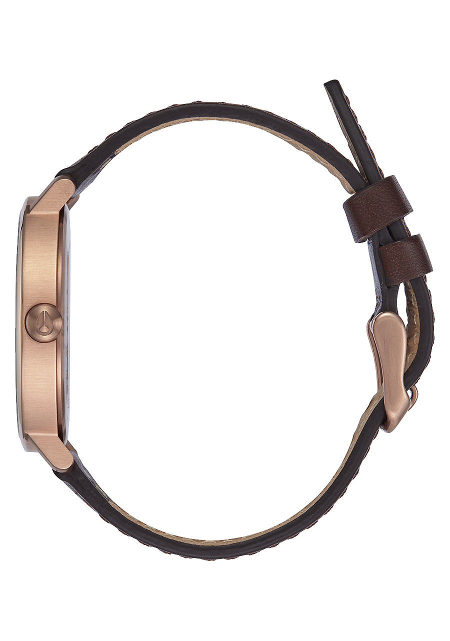 Les détails du cadran incluent le logo Nixon appliqué, les index des heures ainsi que les chiffres imprimés et les aiguilles moulées sur mesure.
