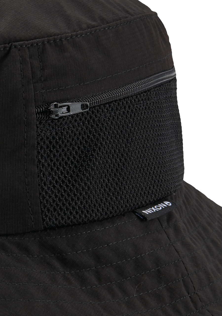 Poche latérale zippée en tissu mesh : Compartiment de rangement interne à l'exterieur du chapeau.