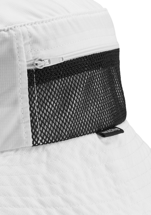Poche latérale zippée en tissu mesh : Compartiment de rangement interne à l'exterieur du chapeau.