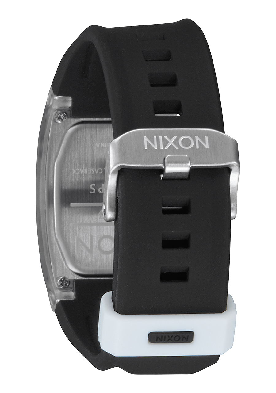 Das Display ist entweder ein positives oder negatives LCD und verfügt über eine individuell gefärbte Leiterplatte sowie einen maßgeschneiderten Batteriekontakt mit NIXON-Logo.