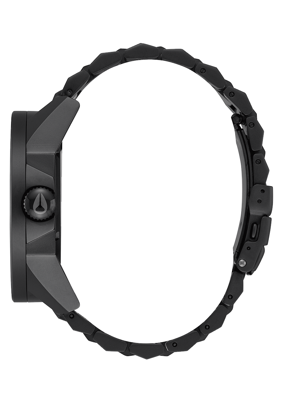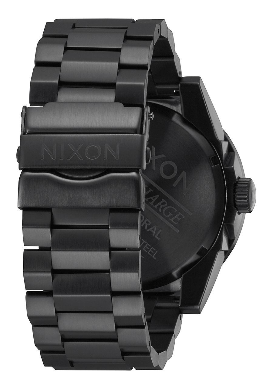 La Nixon Corporal dispose d'un boîtier en acier inoxydable massif personnalisé de 48 mm, d'une lunette fixe en acier inoxydable massif et d'un cristal minéral trempé.