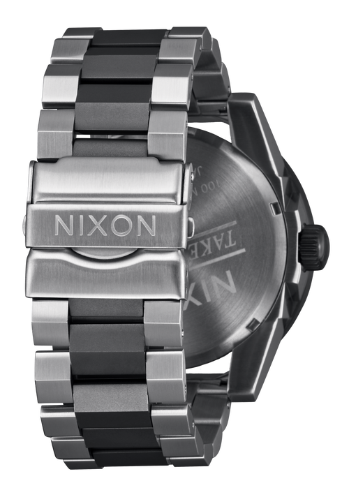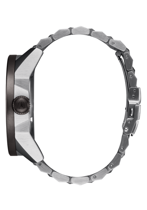 La Nixon Corporal dispose d'un boîtier en acier inoxydable massif personnalisé de 48 mm, d'une lunette fixe en acier inoxydable massif et d'un cristal minéral trempé.