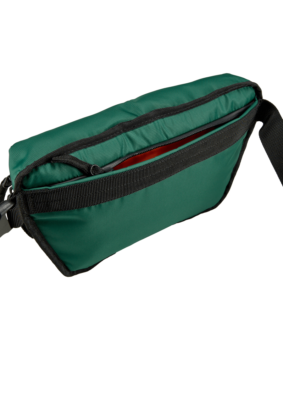 Porté à la taille ou à l’épaule. Sangle et boucle réglables en toile. Poche arrière à fermeture éclair dissimulée. Poche ouverte intérieure en maille avec porte-clés. De plus, des fermetures à glissière extérieures enduites résistantes aux intempéries.