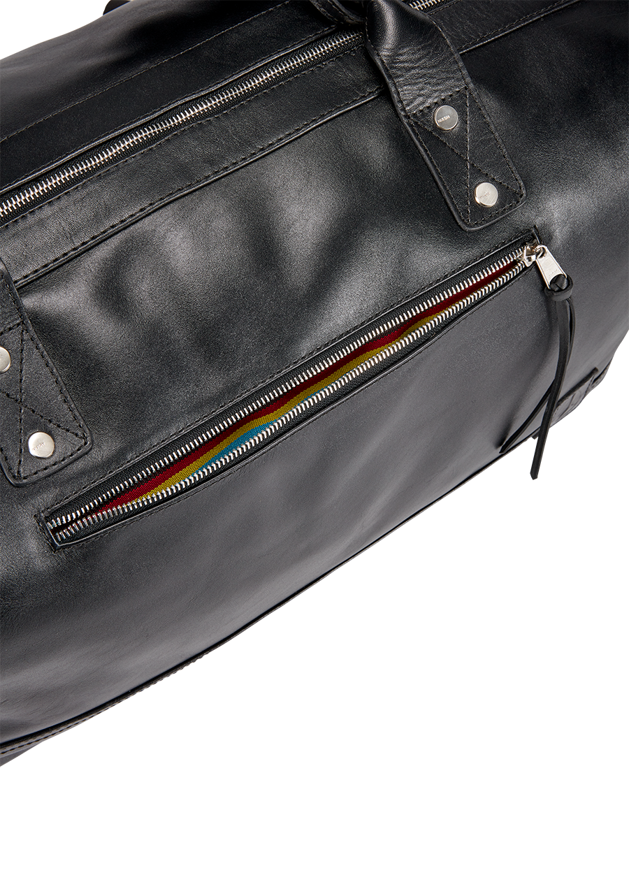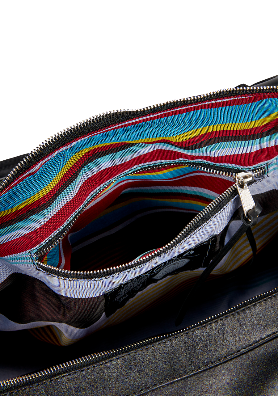 Bandoulière matelassée réglable et amovible. Anses en cuir matelassées. Grande fermeture éclair. Poche zippée interne et externe, logo incrusté