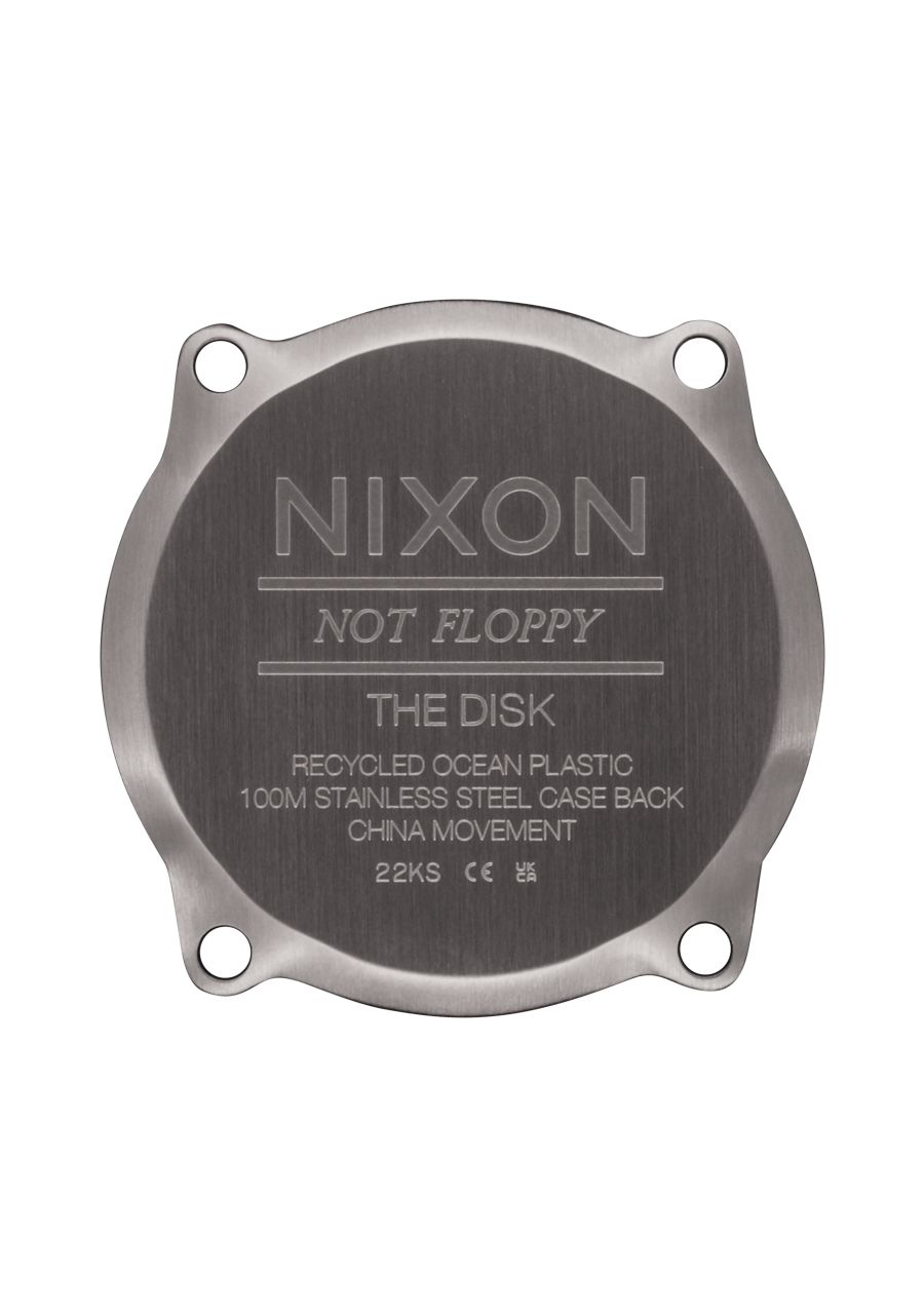 The Disk rompt avec les notions traditionnelles de vérité géométrique. Dotée d'un grand écran numérique, du jour, de la date, d'une alarme, d'un chronographe et d'un compte à rebours, tout ce dont vous avez besoin en appuyant simplement sur un bouton. L'étui ultra-mince paraît presque inexistant lorsque vous êtes en mouvement et les bandes de fixation rapide vous permettent de la mettre en valeur lorsque vous sortez en ville.. Fabriqué à partir de plastique recyclé OPP (Other People's Plastic), The Disk est à la fois écoconsciente et élégante. The Disk – Not Floppy.