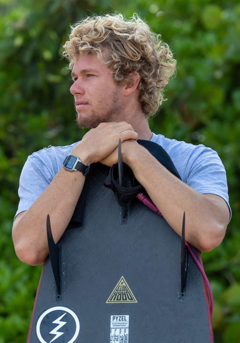A collage of people enjoying their time in the ocean, surfing, wearing the Heat watch.