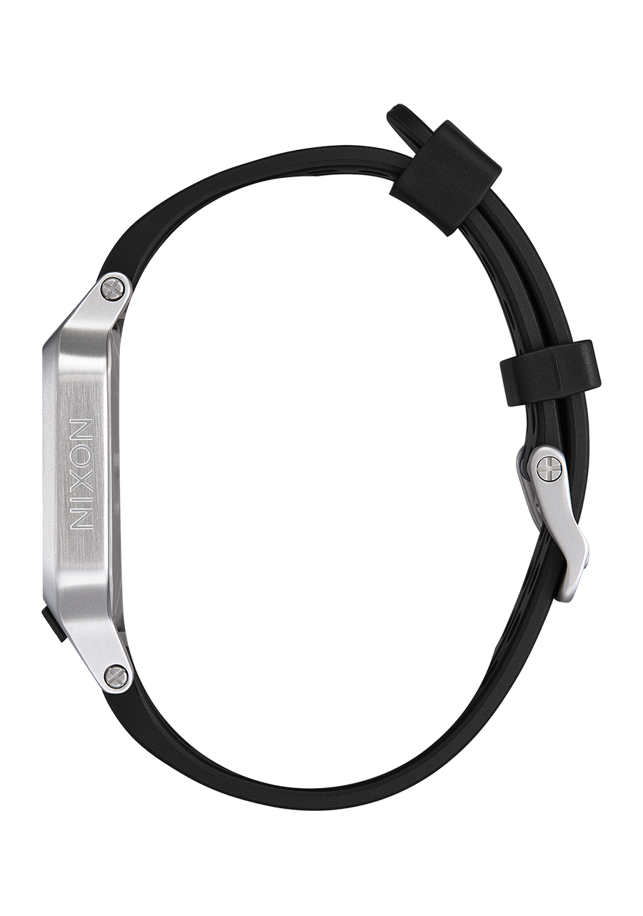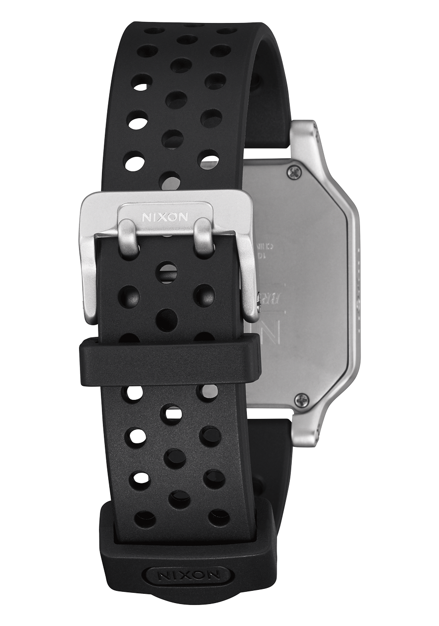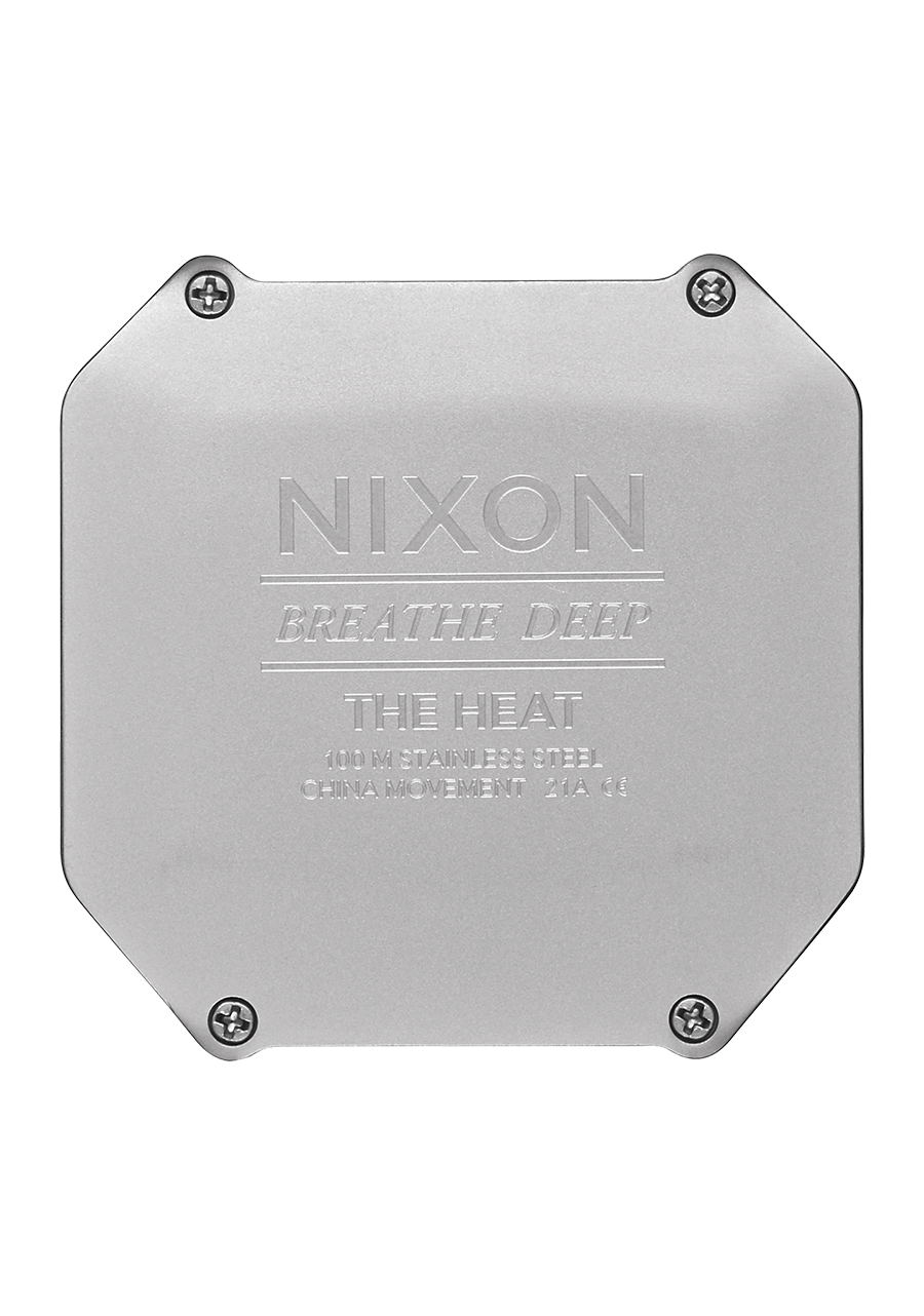 La Nixon Heat est équipée d'un boîtier en acier inoxydable ultra-fin de 38 mm d'épaisseur avec des poussoirs en acier inoxydable et un cristal minéral trempé pour la protection. Le bracelet est une bande en caoutchouc moulé par injection de 20 mm avec un design perforé, conçue pour la durabilité, la respirabilité et le confort. La montre est conçue pour une performance maximale dans le sport, offrant une protection robuste contre les chocs et une résistance à l'eau jusqu'à 100 mètres / 10 ATM.