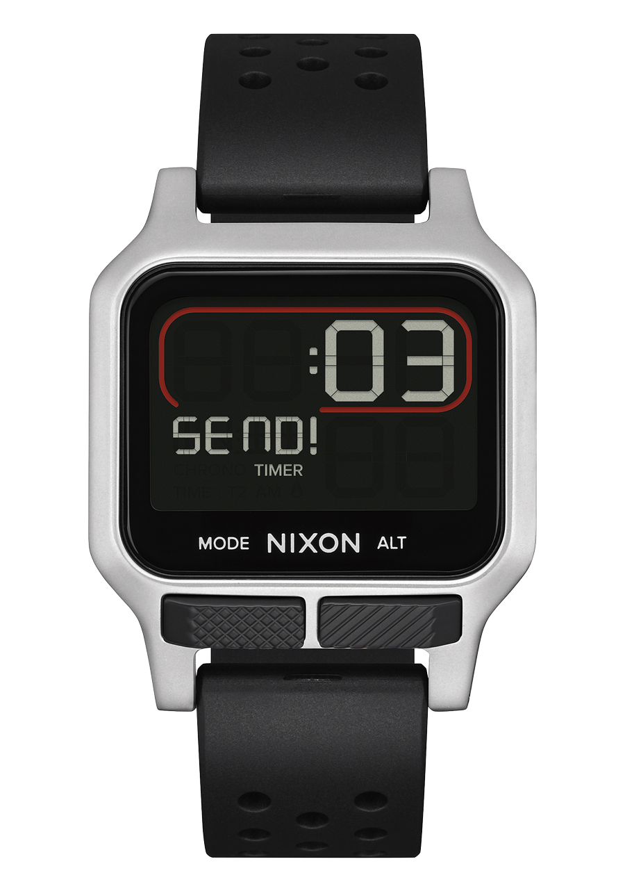 La montre Nixon Heat offre aux athlètes et aux surfeurs plusieurs options de chronométrage, un chronographe et un compte à rebours Final Countdown avec une notification SEND de 60 secondes pour améliorer la performance lors des entraînements. De plus, elle dispose d'un module LCD personnalisé et d'un design robuste mais fin pour résister à des conditions rigoureuses.