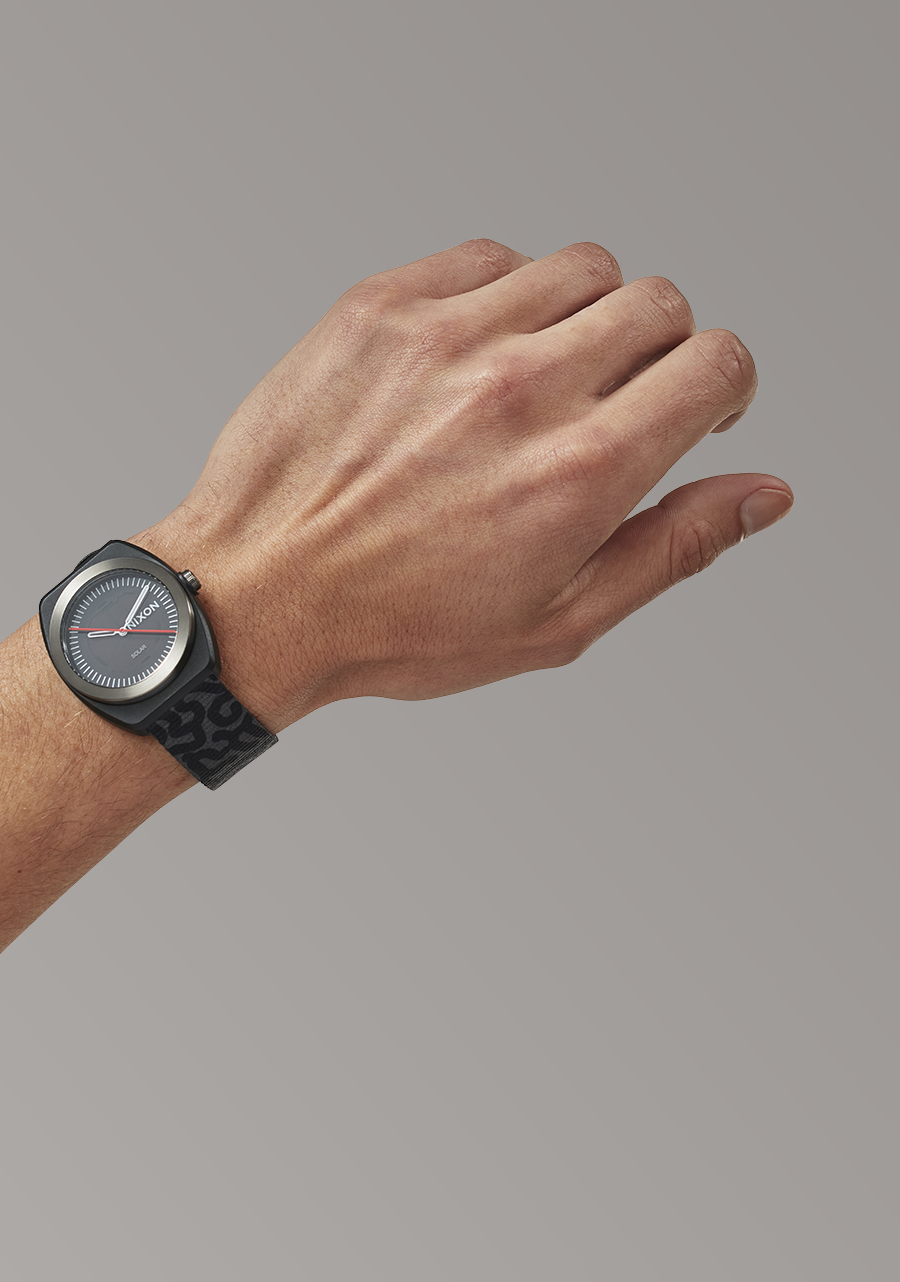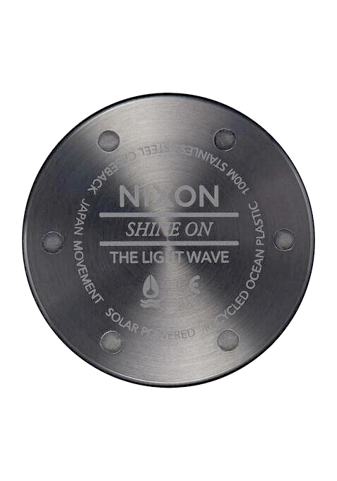 Le cadran comprend des index bâtons appliqués et le logo Nixon. Équipé d'aiguilles filaires pour les heures et les minutes. L'aiguille des secondes s'étend sur toute la longueur du cadran.