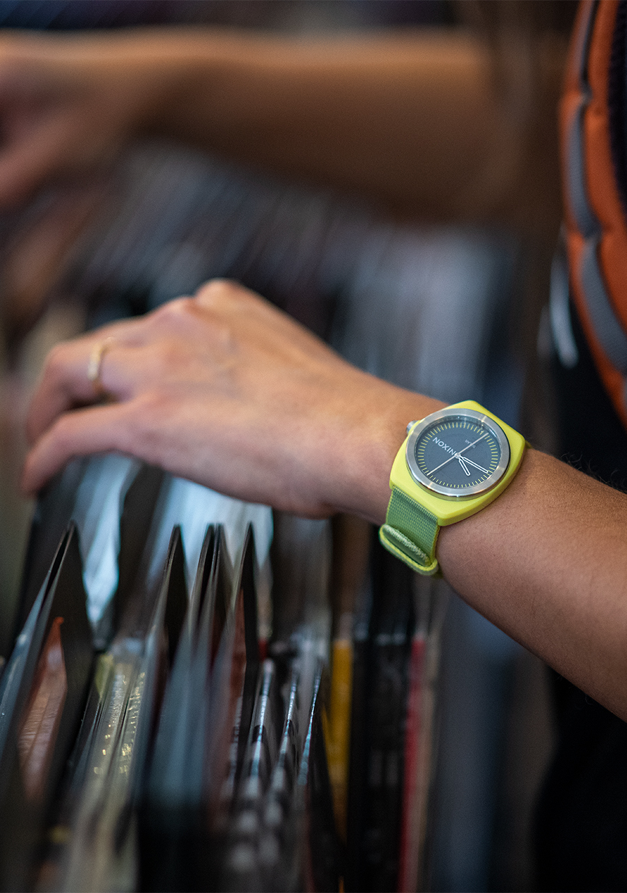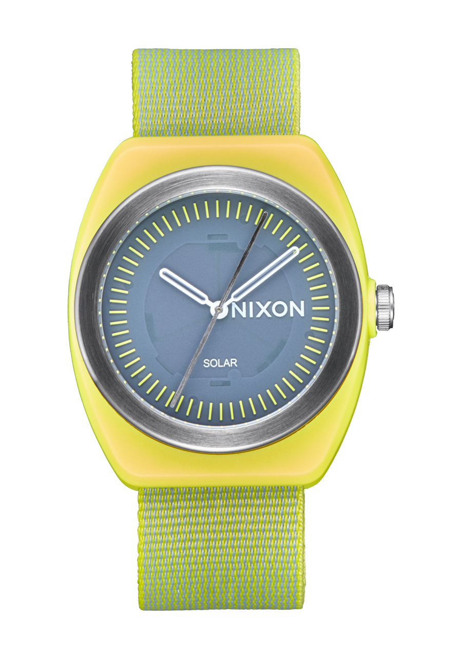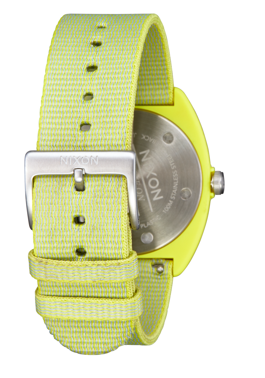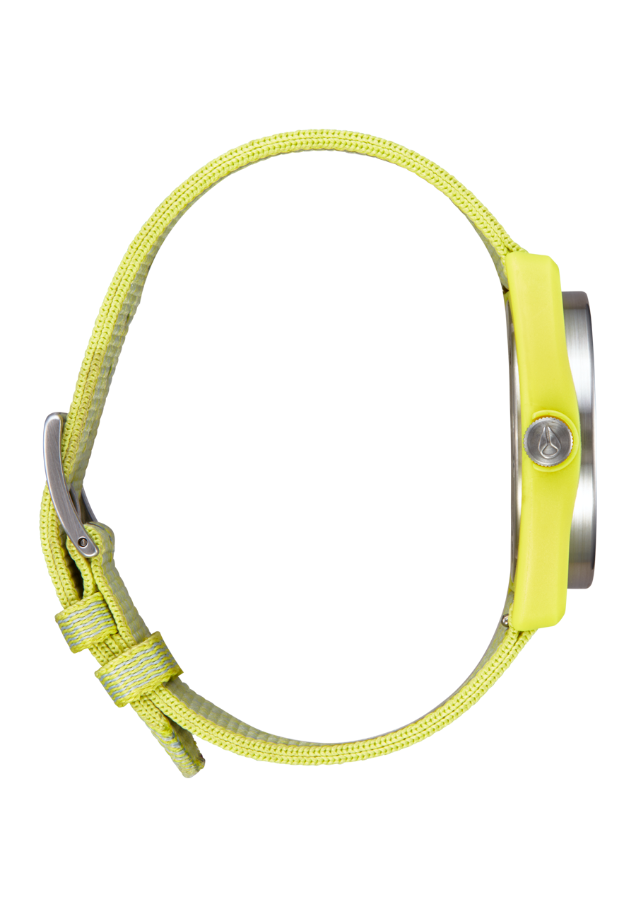 Le cadran comprend des index bâtons appliqués et le logo Nixon. Équipé d'aiguilles filaires pour les heures et les minutes. L'aiguille des secondes s'étend sur toute la longueur du cadran.