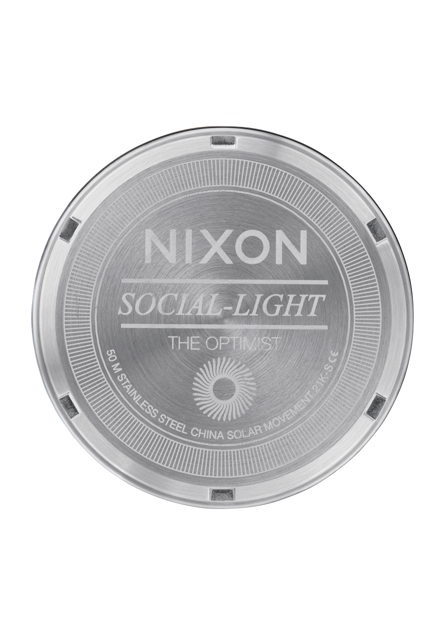 Avancez vers l'avenir. Un look joaillier moderne chargé d'une énergie illimitée, l'Optimist est la montre sociale et lumineuse de Nixon. Avec la combinaison de détails géométriques, de finitions polies et de la cellule solaire pour la faire fonctionner à l'infini, l'Optimist est là et son avenir s'annonce radieux.