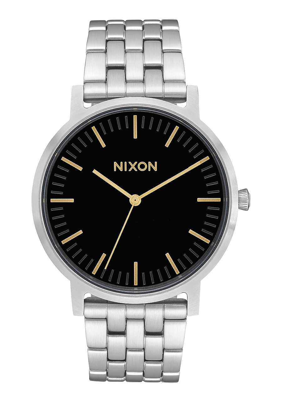 La montre Nixon Porter dispose d'une taille de boîtier de 40mm et d'une largeur de bracelet de 20mm au niveau des cornes, avec un design effilé jusqu'à 18mm, ce qui en fait un ajustement confortable pour la plupart des poignets. La montre est conçue avec un bracelet en acier inoxydable qui offre un ajustement sécurisé et élégant.