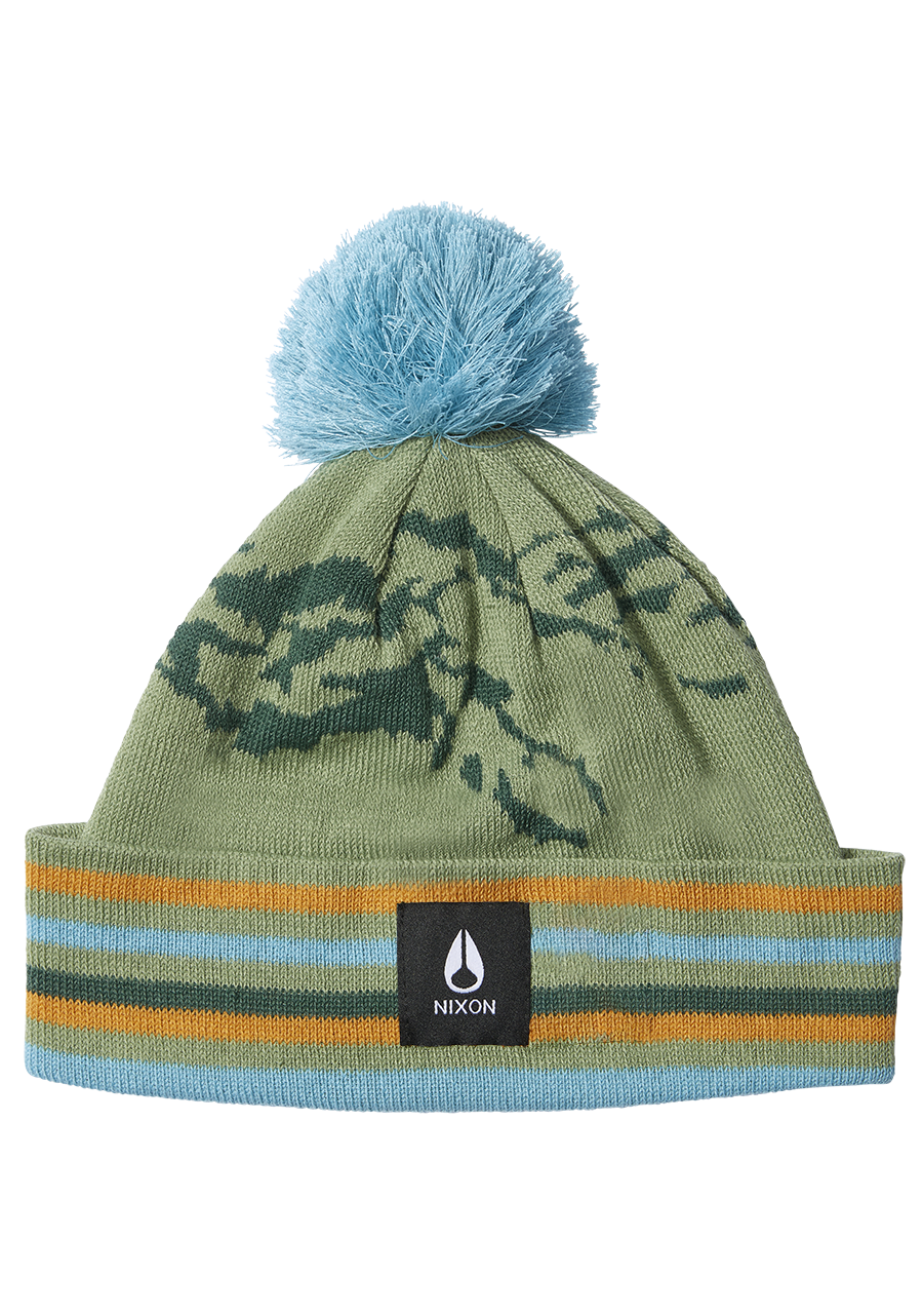 Portez-le jusqu’aux sommets. Le bonnet Ridge Pom arbore un paysage montagneux en jacquard dentelé sur une coque en polyester recyclé à 100 %. Il est conçu pour être porté dans la nature et contribuer à la protéger.