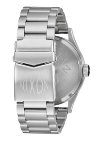 Boîtier personnalisé en acier inoxydable massif de 42 mm avec une étanchéité de 100 mètres / 10 ATM. Équipé d'un verre minéral trempé, d'une couronne à triple joint avec remplissage en émail, d'un fond de boîtier vissé en acier inoxydable et de cornes à goupille ressort.