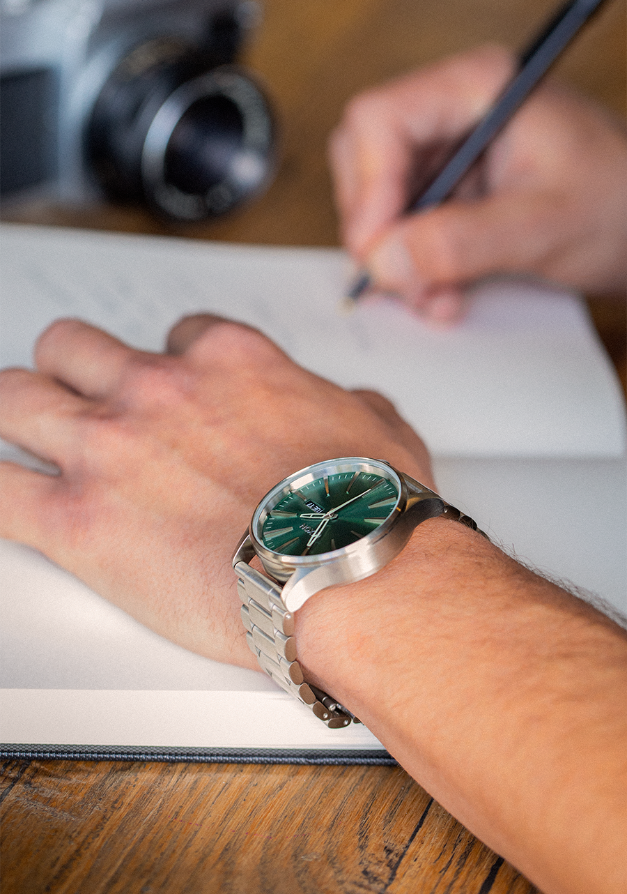 La Sentry est une montre élégante avec un côté aventurier. Imaginez un smoking rencontre une fête de quartier. Le cadran se distingue par sa profondeur et ses détails, mais avec son boîtier en acier inoxydable massif, son verre minéral renforcé et son étanchéité jusqu'à 100 m, vous n'avez pas à craindre qu'elle ne tienne pas dans le monde réel.