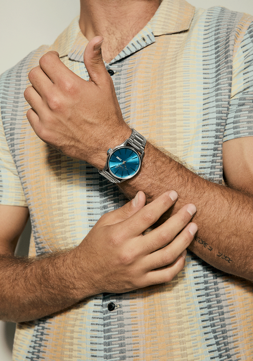 Détendez-vous au bord de la piscine pour la journée avec la toute nouvelle Collection Aquatique. Dotées du Time Teller, du Sentry Stainless Steel et du Stinger 44, ces montres classiques en argent se remplissent de bleus vibrants et riches pour accompagner votre voyage du transat jusqu'au grand bain.