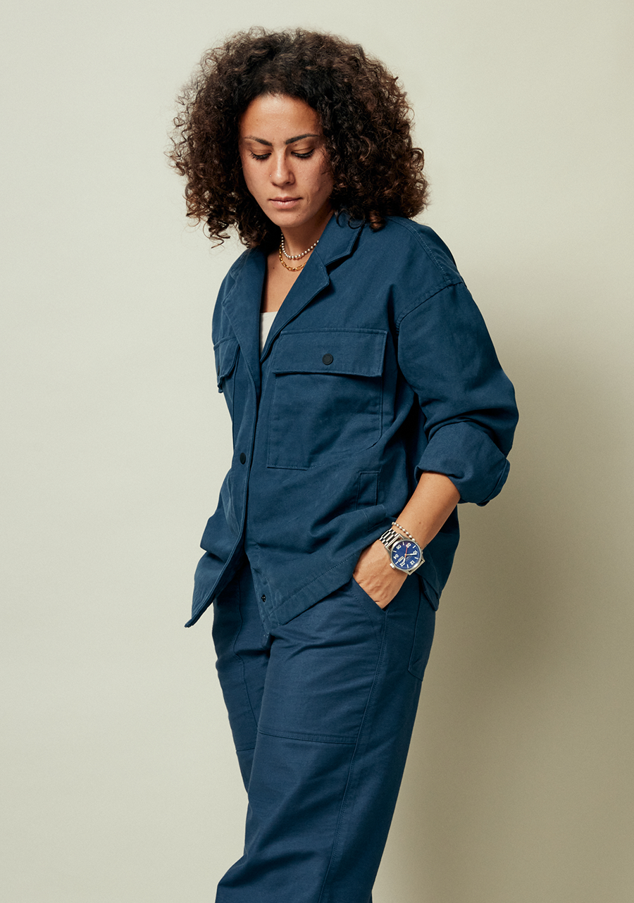 Le cadran présente des index bâtons appliqués, une minuterie imprimée et des aiguilles moulées sur mesure.