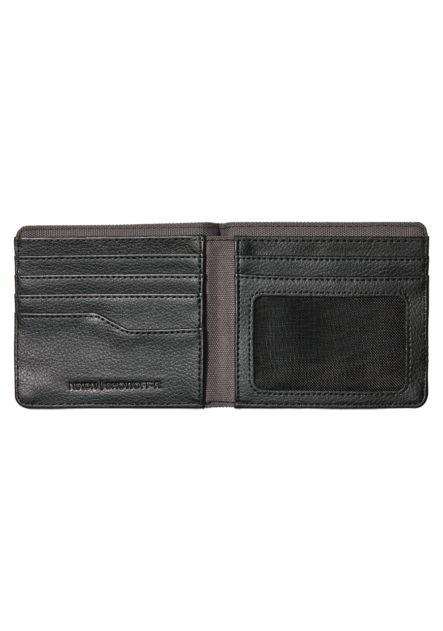 Grand compartiment à billets, plusieurs fentes pour cartes et pochettes en filet pour pièces d'identité.