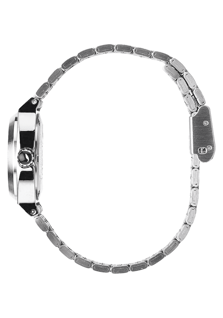 Le cadran présente des index bâtons imprimés et des aiguilles moulées sur mesure.
