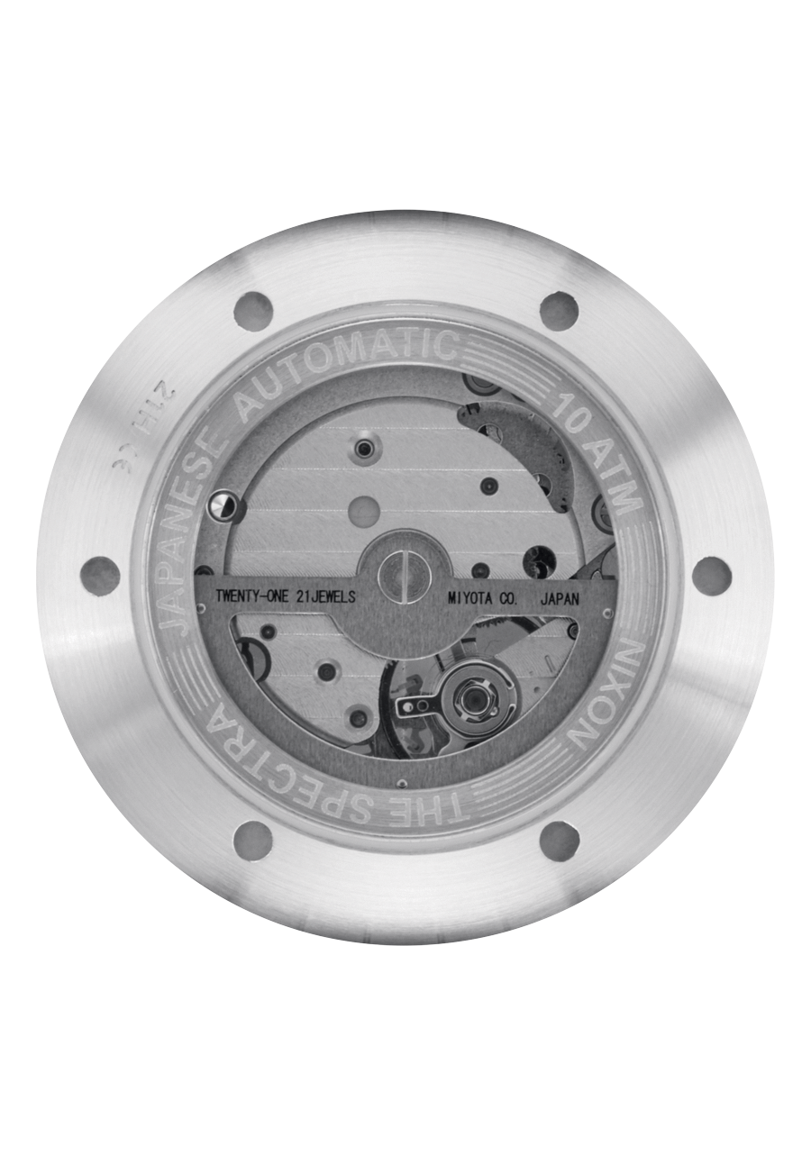 La Nixon Spectra utilise un mouvement automatique japonais Miyota 82S0 à vingt-et-un rubis, à trois aiguilles, qui dispose d'un système de remontage par rotor en tungstène multidirectionnel — le mouvement du poignet du porteur remonte le ressort principal via ce rotor pour une remontée automatique.