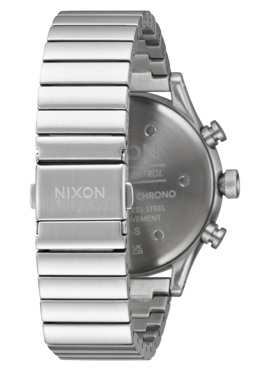 Le cadran présente des index horaires imprimés et une piste des secondes, ainsi qu'une fenêtre de date. Chronographe à deux compteurs avec texture en relief sur les sous-cadrans et aiguilles moulées sur mesure. Le sous-cadran à 12 heures affiche un compteur de minutes. Le sous-cadran à 6 heures affiche un compteur de secondes.