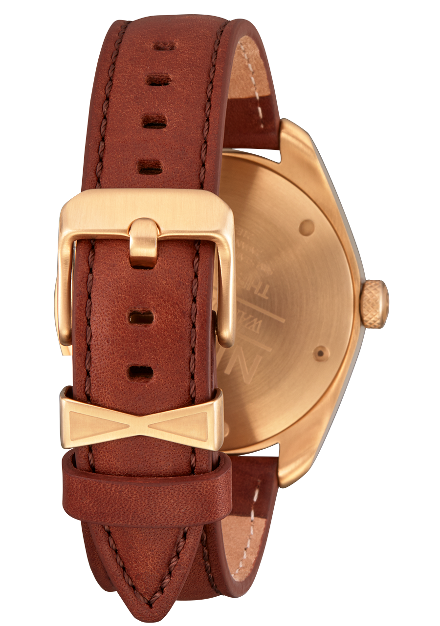 Du cuir tanné végétal aux surpiqûres extérieures, en passant par le passant personnalisé en acier inoxydable et la boucle gravée Nixon, la silhouette élancée de Thalia regorge de détails subtils.