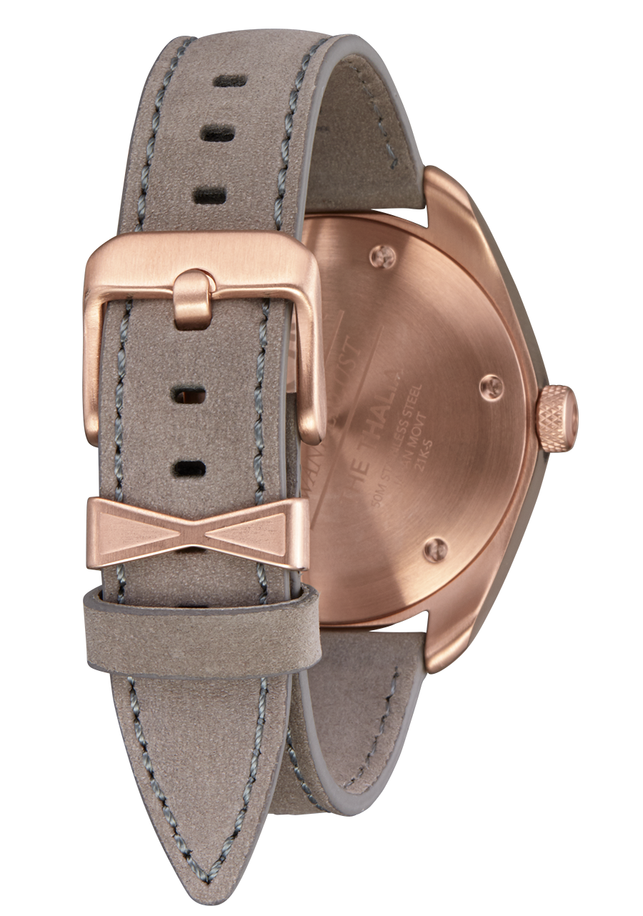 Une beauté élancée, le design minimaliste de la Thalia met en valeur un côté élégant et plus doux de la conception horlogère tout en gardant un cadran grand et audacieux. Des détails allant de l'affichage de la date jusqu'à la couronne gravée d'ailes personnalisée et le passant en acier inoxydable en forme d'arc, lui permettent de se faire remarquer sans être criarde. La Thalia est une beauté discrète.
