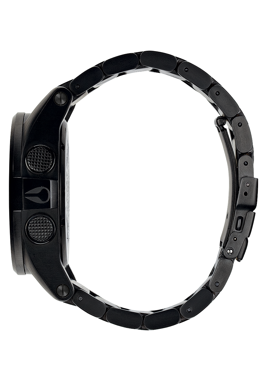 Mouvement numérique personnalisé avec affichage négatif, heure au format 12 ou 24 heures, calendrier, indicateur de température, double fuseau horaire, minuterie de compte à rebours, chronographe, alarme et fonctions d'éclairage.