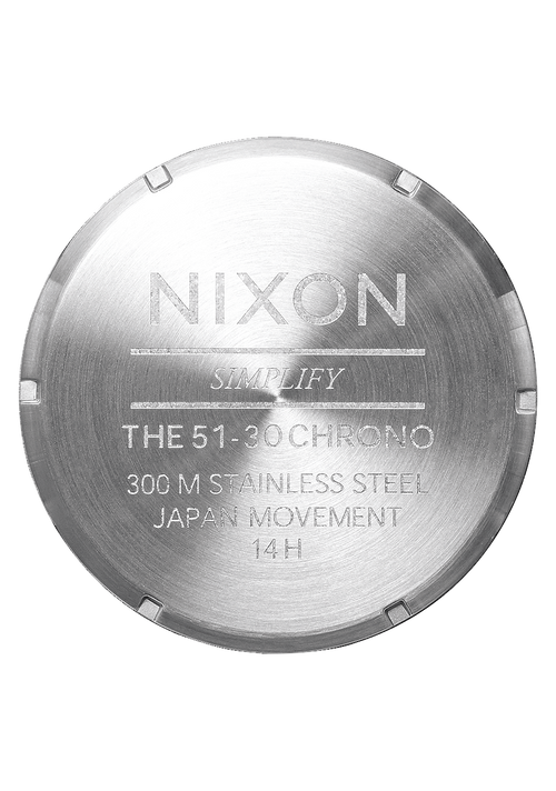 Cassa personalizzata in acciaio inossidabile massiccio da 51 mm con resistenza all'acqua fino a 300 metri / 30 ATM. Include una lunetta girevole unidirezionale con timer di conto alla rovescia, vetro minerale indurito, corona e pulsanti a vite, fondello a vite in acciaio inossidabile e anse con perni a vite.