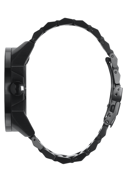 Cassa personalizzata in acciaio inossidabile massiccio da 48 mm e lunetta fissa con resistenza all'acqua di 100 metri / 10 ATM. Include un vetro minerale indurito, corona a tripla guarnizione con smalto, fondello avvitato in acciaio inossidabile e anse con perni a molla.