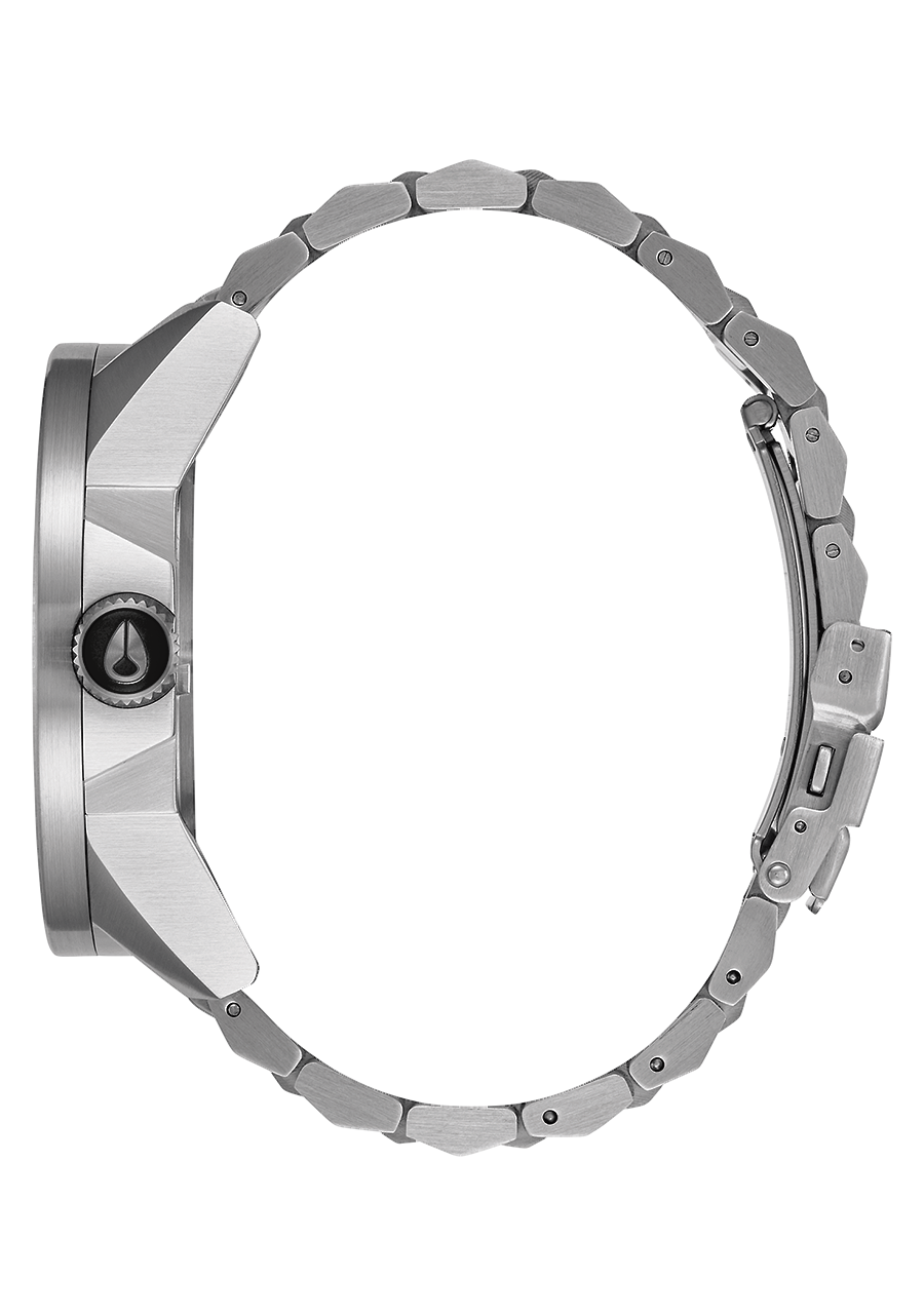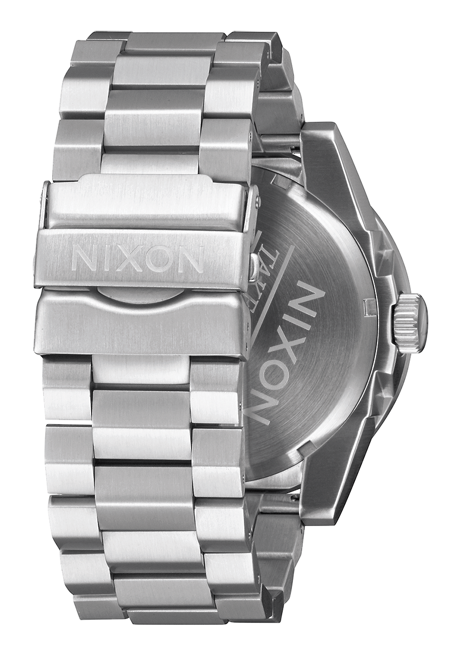 Cassa personalizzata in acciaio inossidabile massiccio da 48 mm e lunetta fissa con resistenza all'acqua di 100 metri / 10 ATM. Include un vetro minerale indurito, corona a tripla guarnizione con smalto, fondello avvitato in acciaio inossidabile e anse con perni a molla.