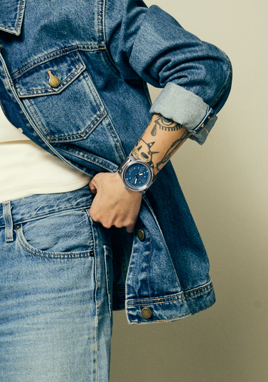 Il denim non dovrebbe essere limitato solo a jeans e giacche. Dai al tuo polso un tocco di stile con sei modelli unici tra cui scegliere. Il modello 51-30 sfoggia vero denim direttamente sul quadrante, mentre il Medium Time Teller porta il denim lungo tutto il cinturino. Ispirati ai robusti rivetti, i modelli Corporal, Sentry e Station Chrono presentano una costruzione in acciaio inossidabile su cassa, lunetta e cinturino, facendo risaltare i loro quadranti blu profondo come nessun altro. Infine, con il Time Teller Leather puoi cambiare materiale senza rinunciare al look in denim. Perfetto da abbinare alla tua giacca preferita, ai tuoi jeans o al completo “Canadian Tuxedo”.