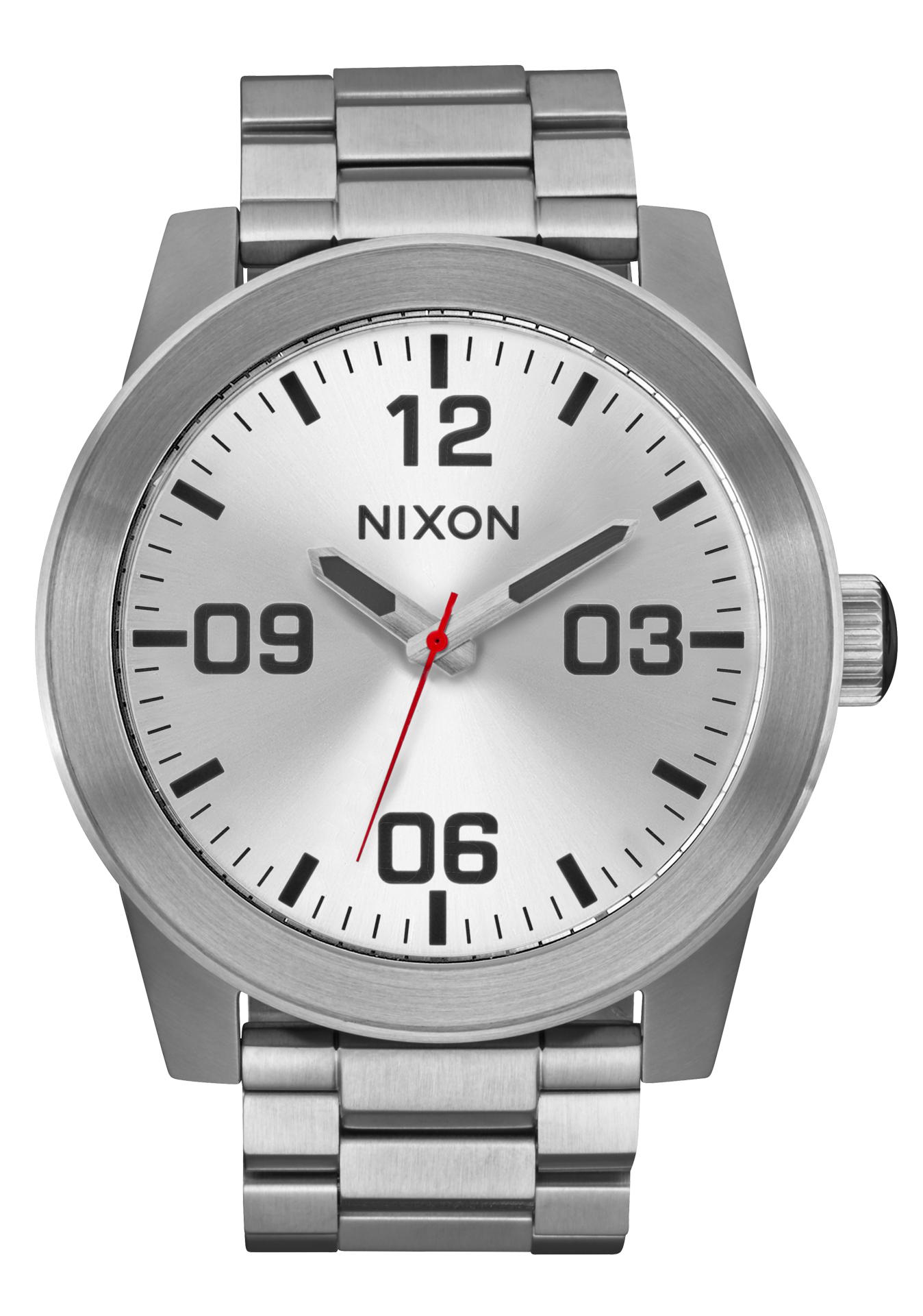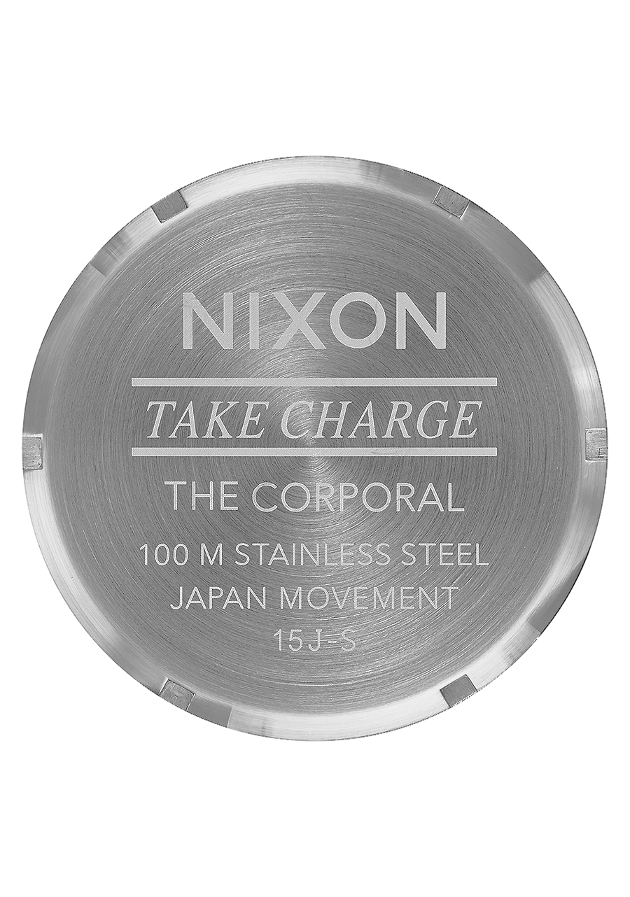 Die Nixon Corporal Uhr verwendet ein Miyota Japanisches Quarz-Uhrwerk mit drei Zeigern.