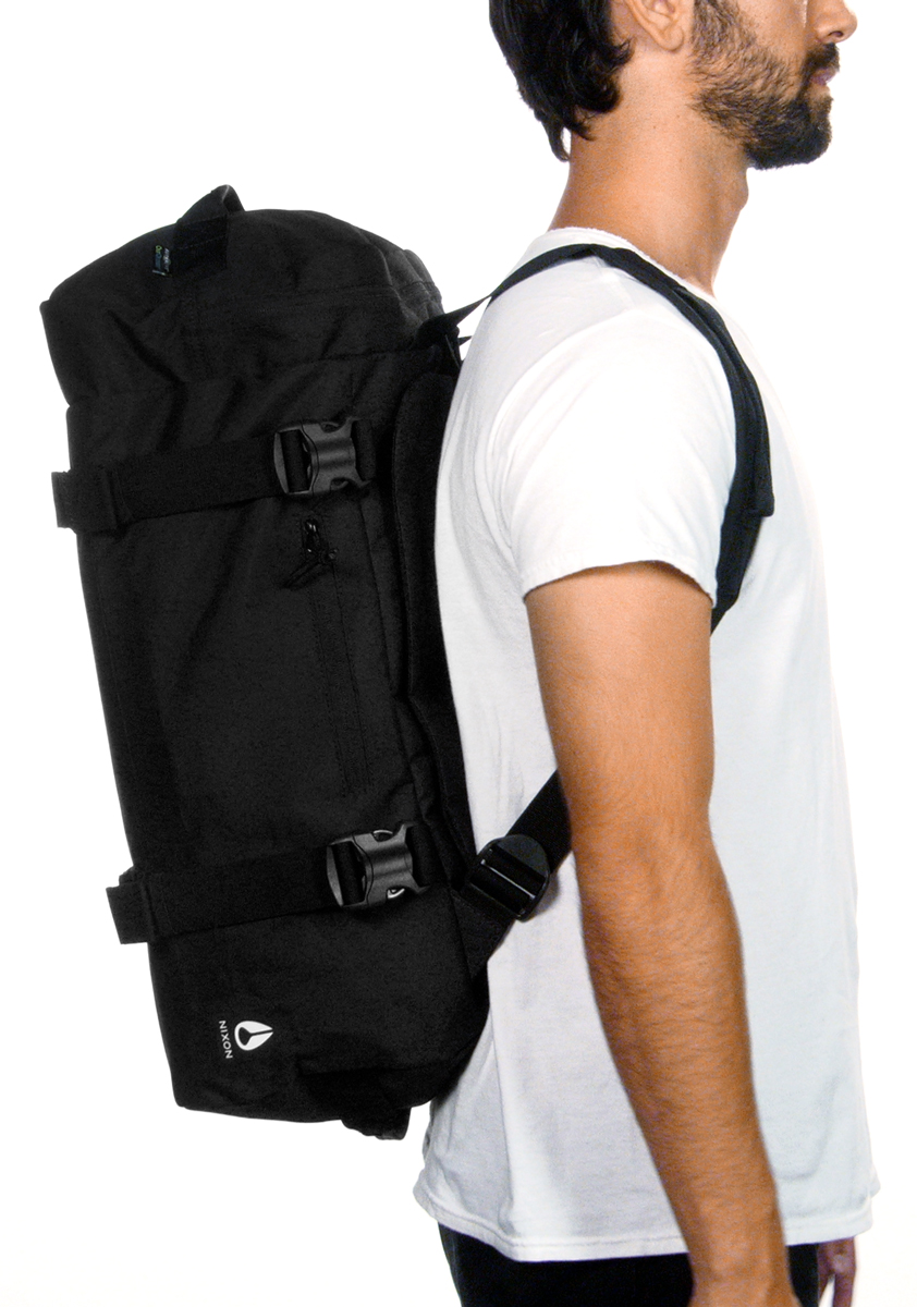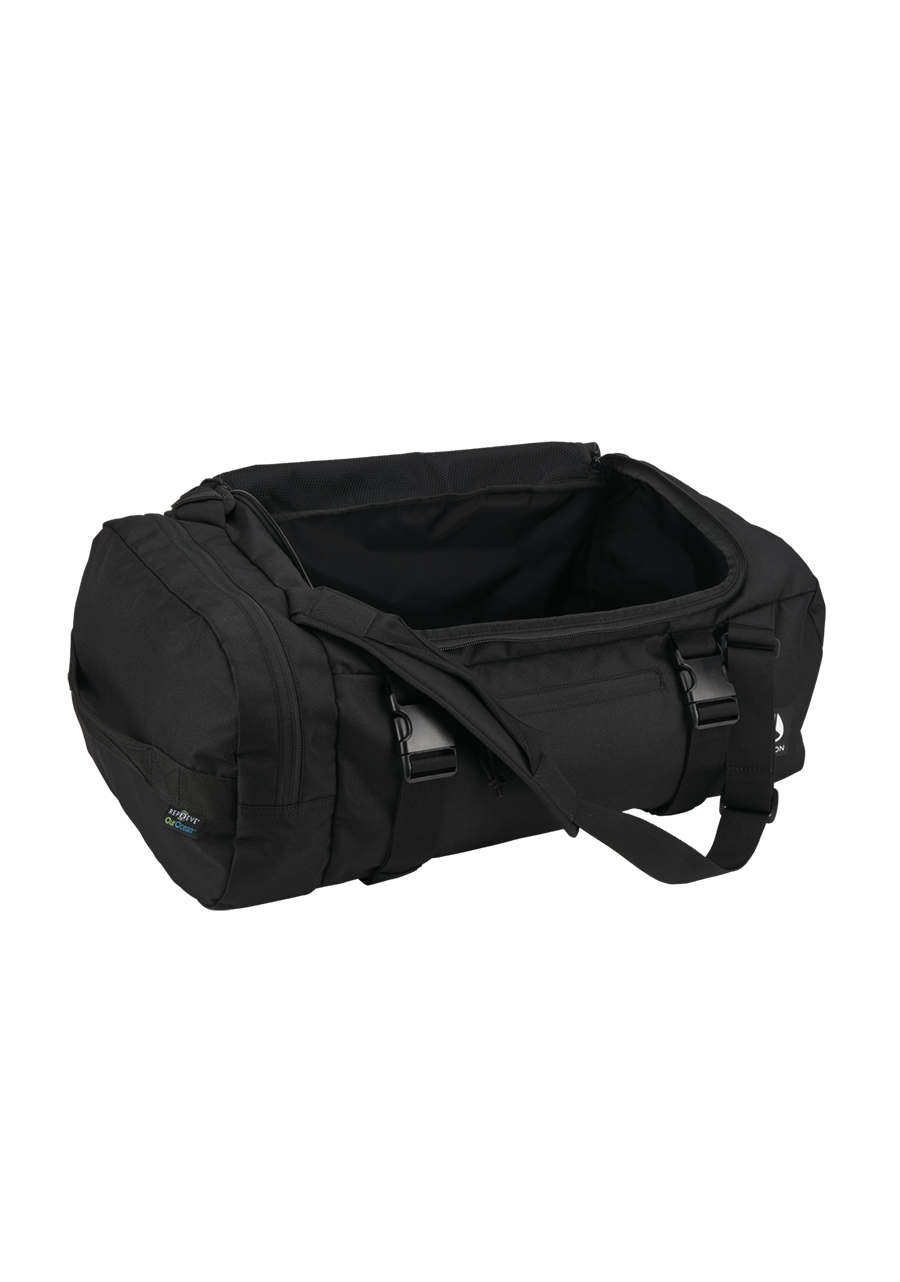 Grazie allo spallaccio staccabile e alle cinghie regolabili, si trasforma facilmente da borsone a zaino.