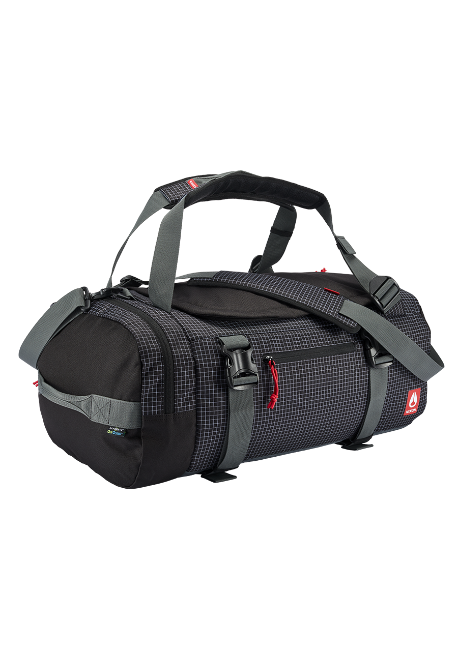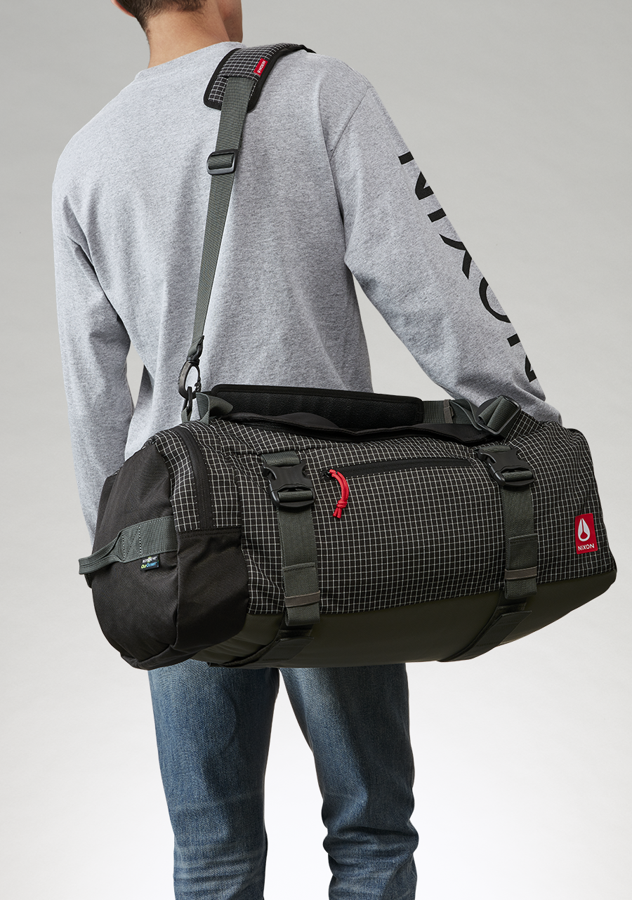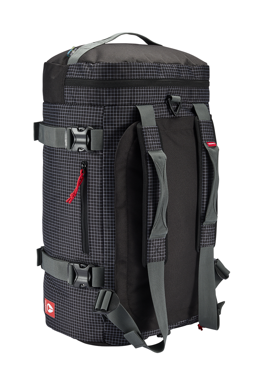 Grazie allo spallaccio staccabile e alle cinghie regolabili, si trasforma facilmente da borsone a zaino.