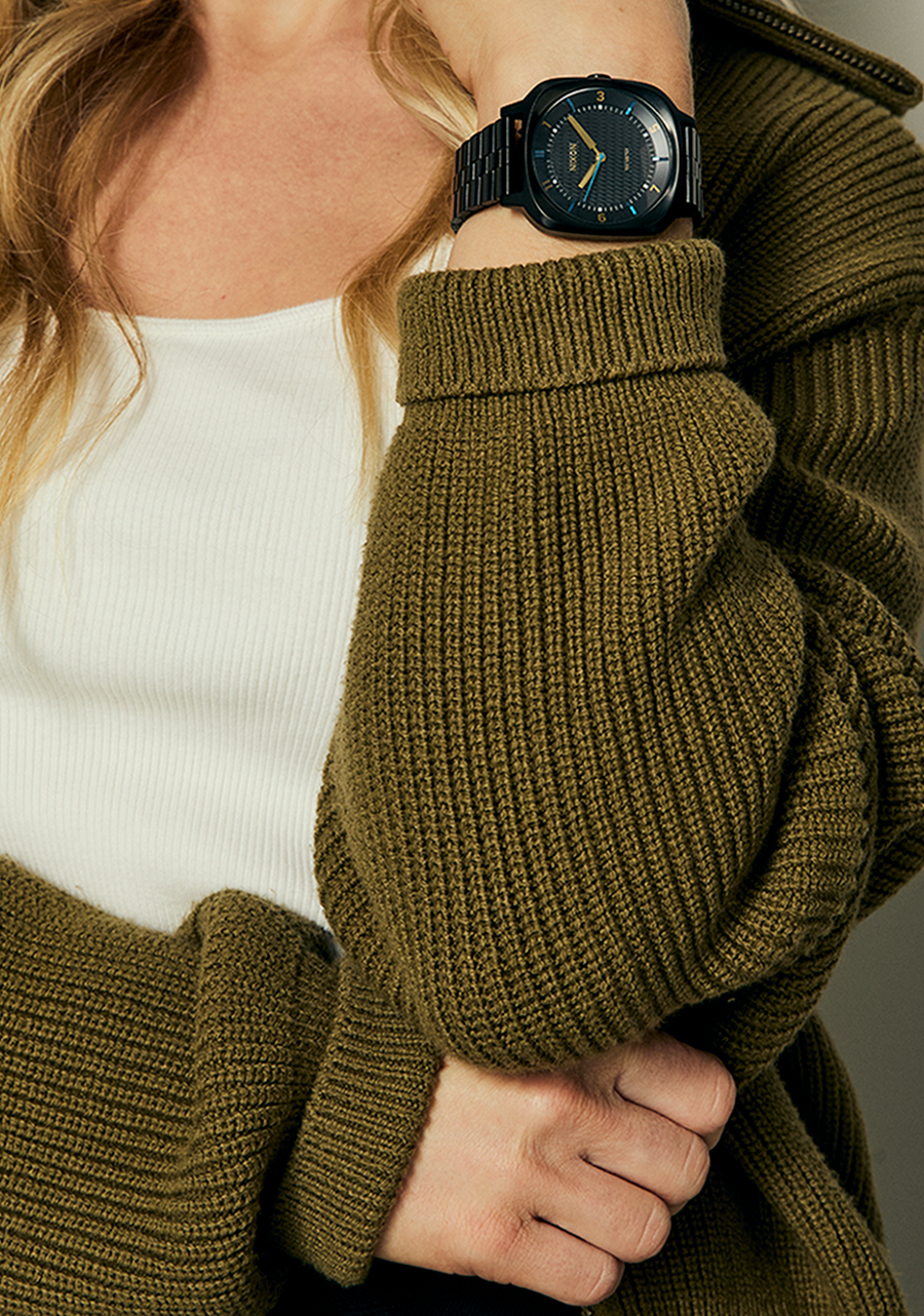 È dotato di un fermaglio in acciaio inossidabile a regolazione rapida che permette il ridimensionamento senza attrezzi. Basta sbloccare l'orologio e trovare il piccolo pannello con il marchio "NIXON". Sollevalo e potrai regolare la dimensione del bracciale.
