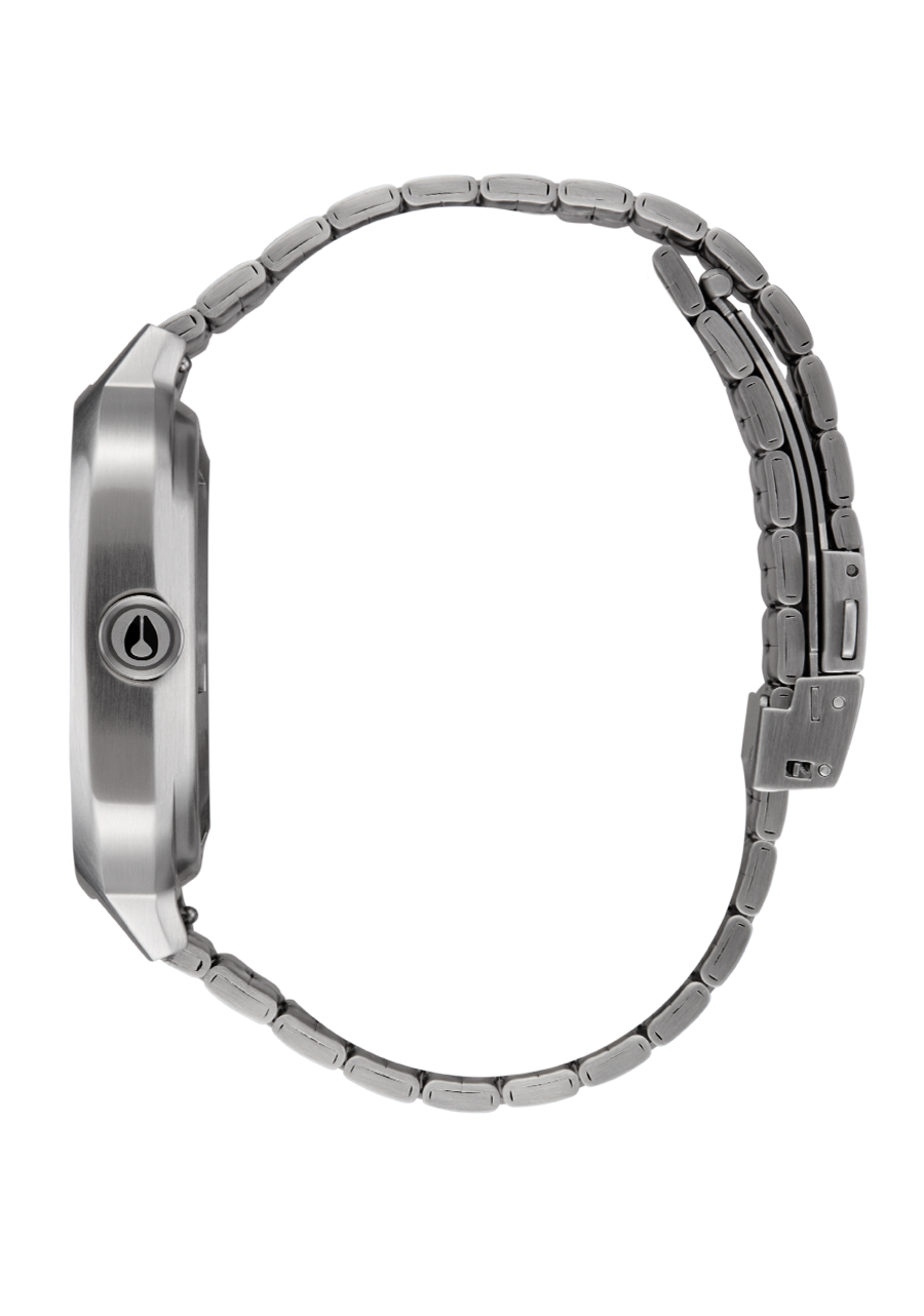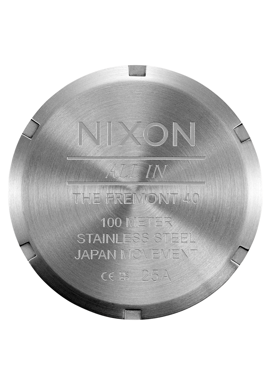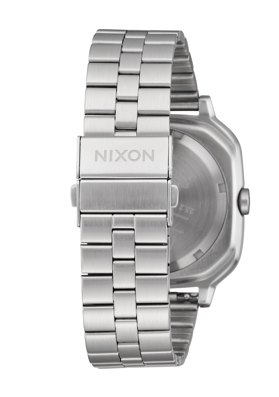 È dotato di un fermaglio in acciaio inossidabile a regolazione rapida che permette il ridimensionamento senza attrezzi. Basta sbloccare l'orologio e trovare il piccolo pannello con il marchio "NIXON". Sollevalo e potrai regolare la dimensione del bracciale.