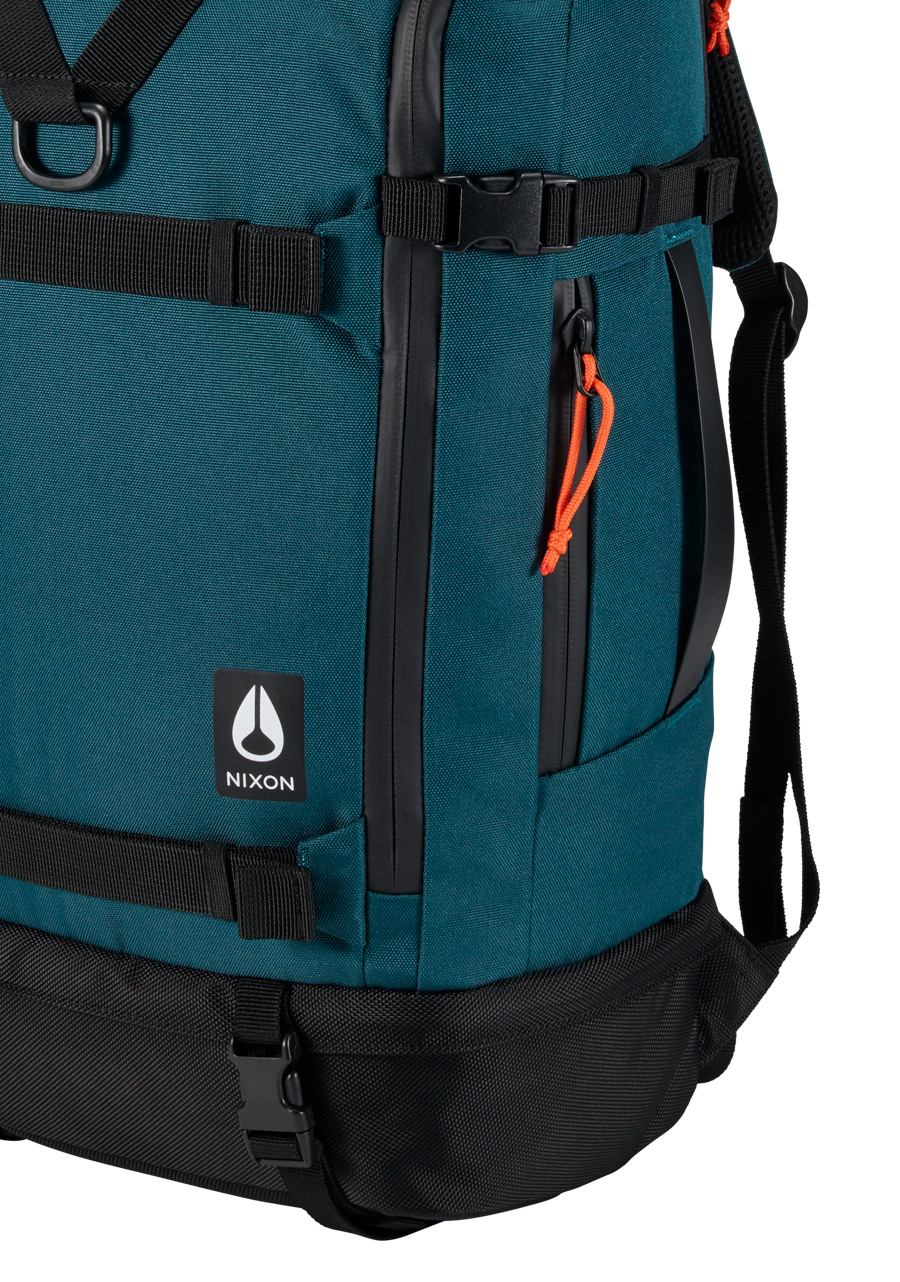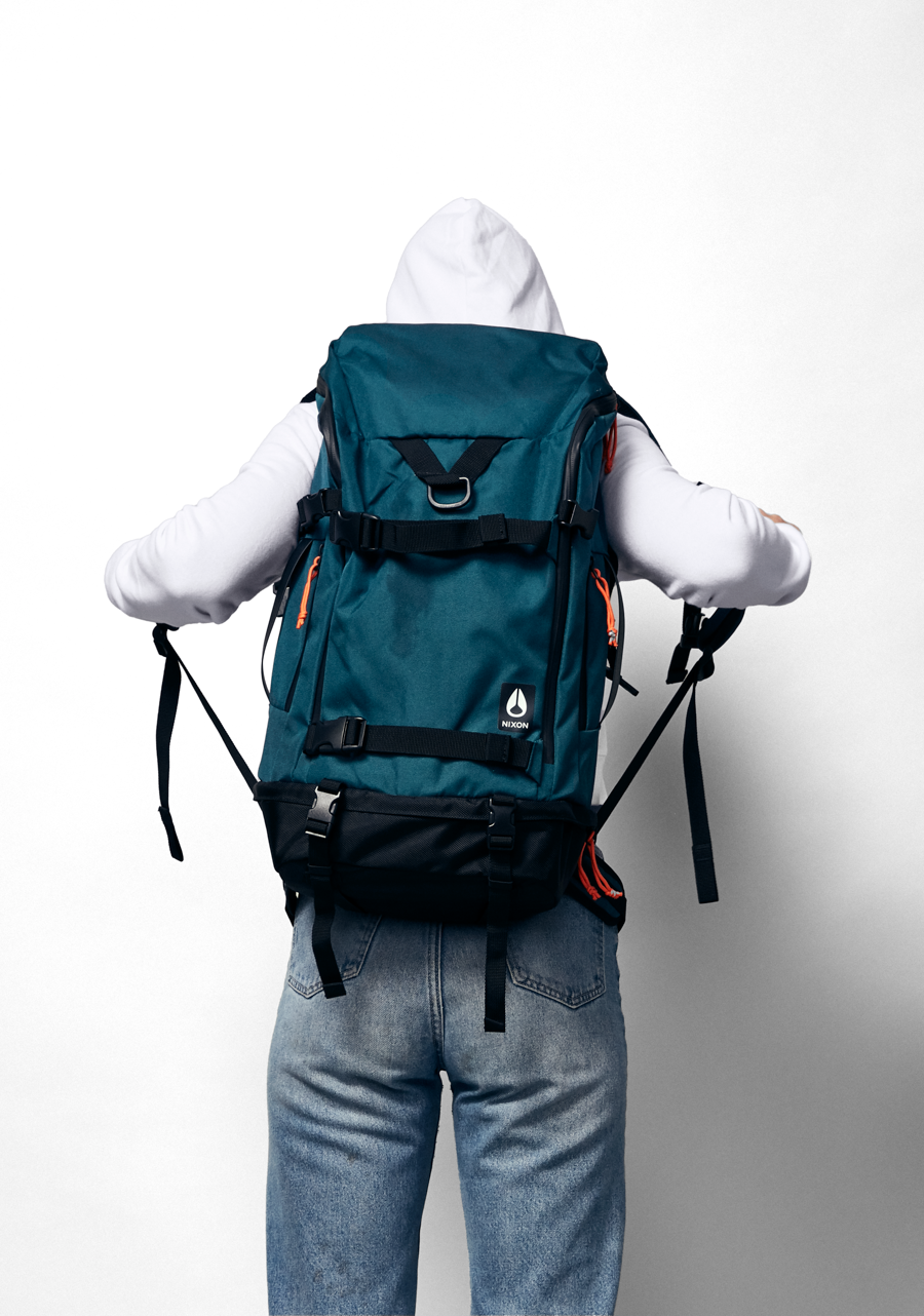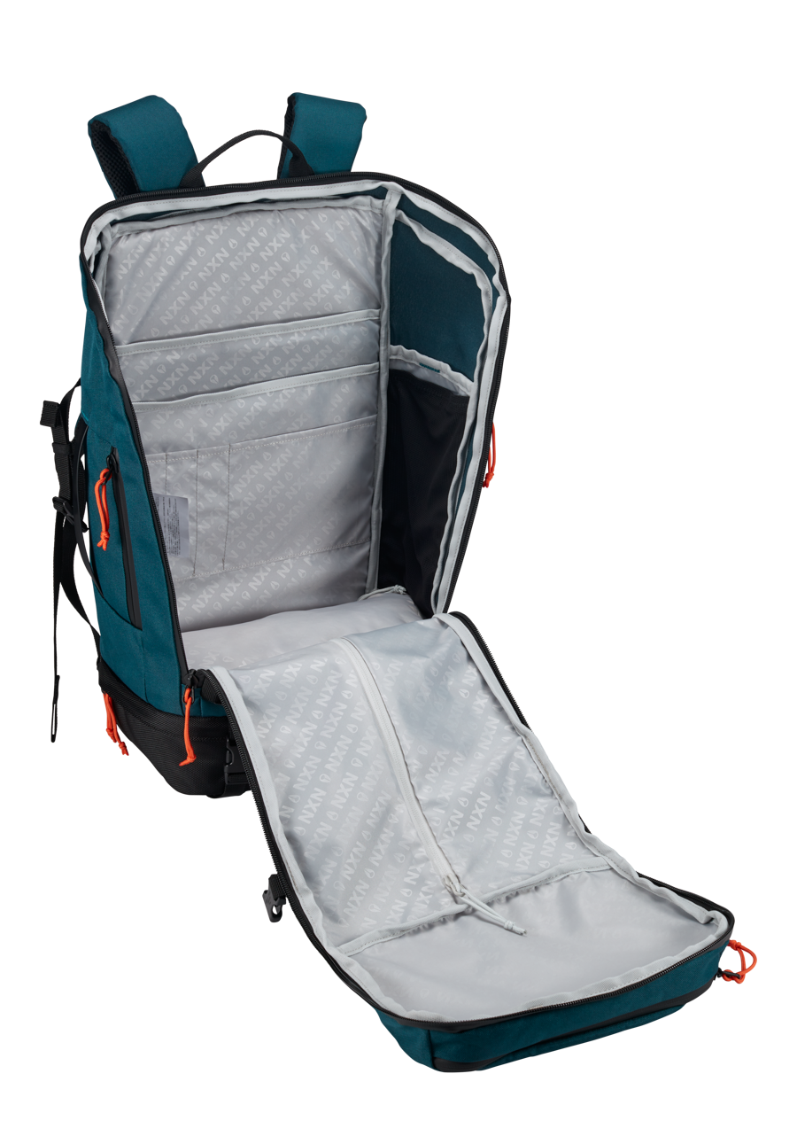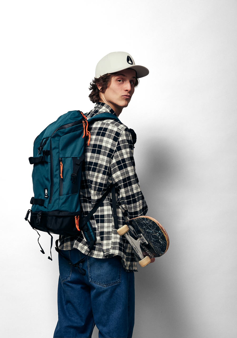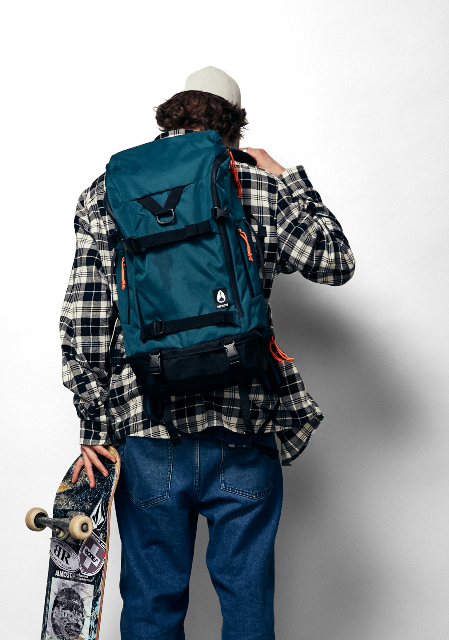 Scomparto per laptop (16”) con tasche esterne con cerniera. L’ampio scomparto principale è dotato di tasche organizer interne. Lo scomparto con cerniera per scarpe/asciugamani tiene separati gli oggetti bagnati o sporchi. Le cinghie per skateboard offrono uno spazio sicuro per la tua tavola. Piccola tasca in mesh removibile attaccata alla tracolla, della misura perfetta per un gel igienizzante per mani da viaggio.