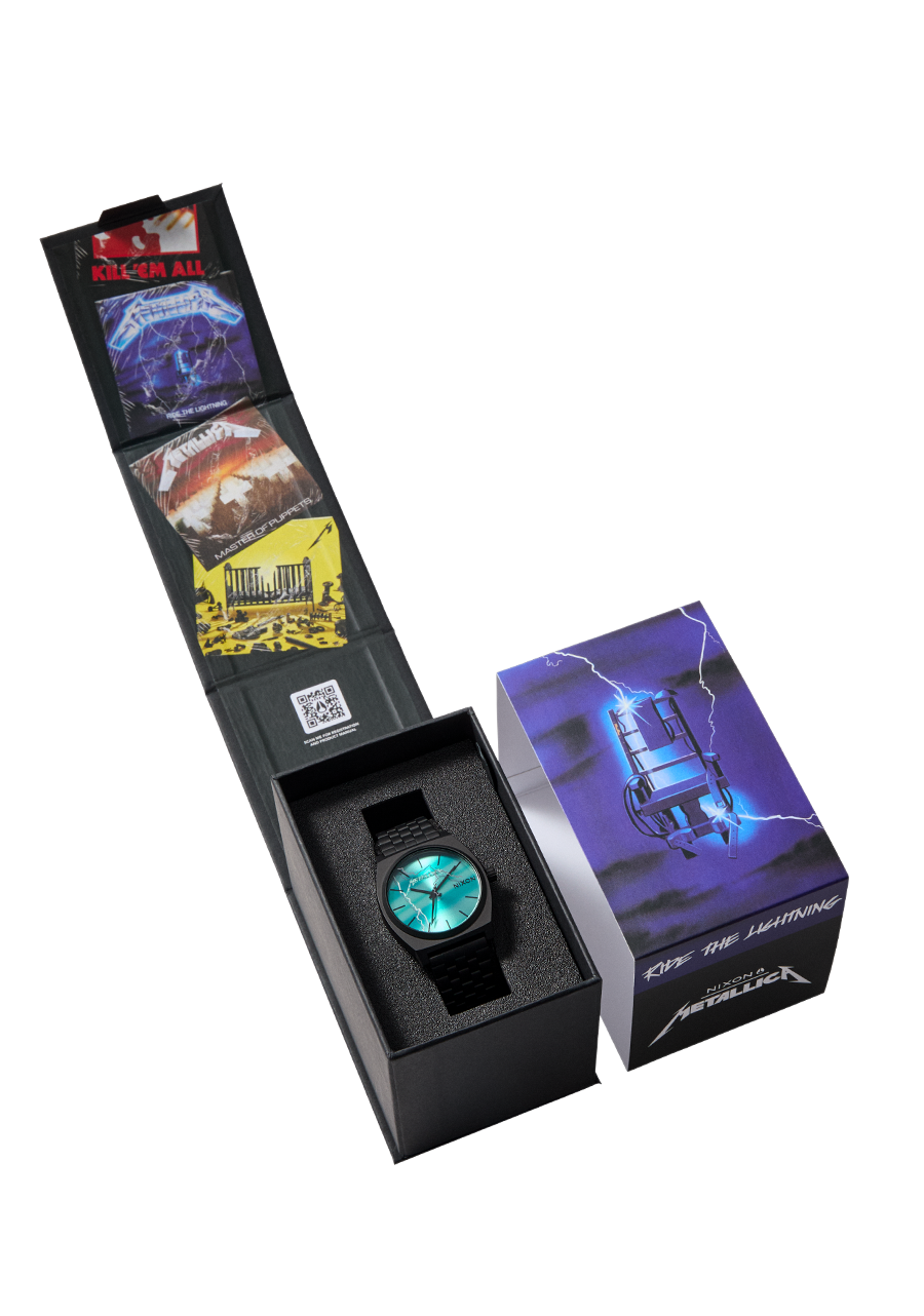 Three of Metallica's legendary albums get the full Nixon treatment with the artwork for Master of the Puppets, Ride the Lightning, and Kill 'Em All front and center display on the dial. But we didn't stop there. Custom-built hour and minute hands prove that the little details make a huge difference, while the matching collectible packaging takes these watches straight into the VIP section.