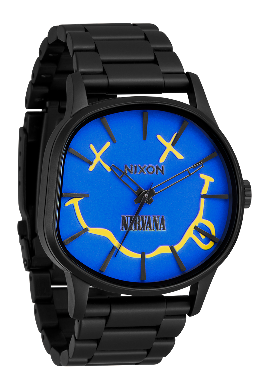 Un gruppo di questo calibro merita un orologio come nessun altro. La collezione Nirvana include il Sentry Wobble, con una cassa deformata che si adatta perfettamente al suo iconico logo Smiley. A accompagnare il Wobble c'è il Sentry Leather, il cui cinturino ha la sensazione di un morbidissimo pullover, e un quadrante a raggi, su cui le lettere 'Nirvana' sono incluse obliquamente come indici. Infine, c'è il minimalista Time Teller, che fa una dichiarazione chiara: un volto Smiley nero su quadrante nero, con il logo e la scritta Nirvana gialla.