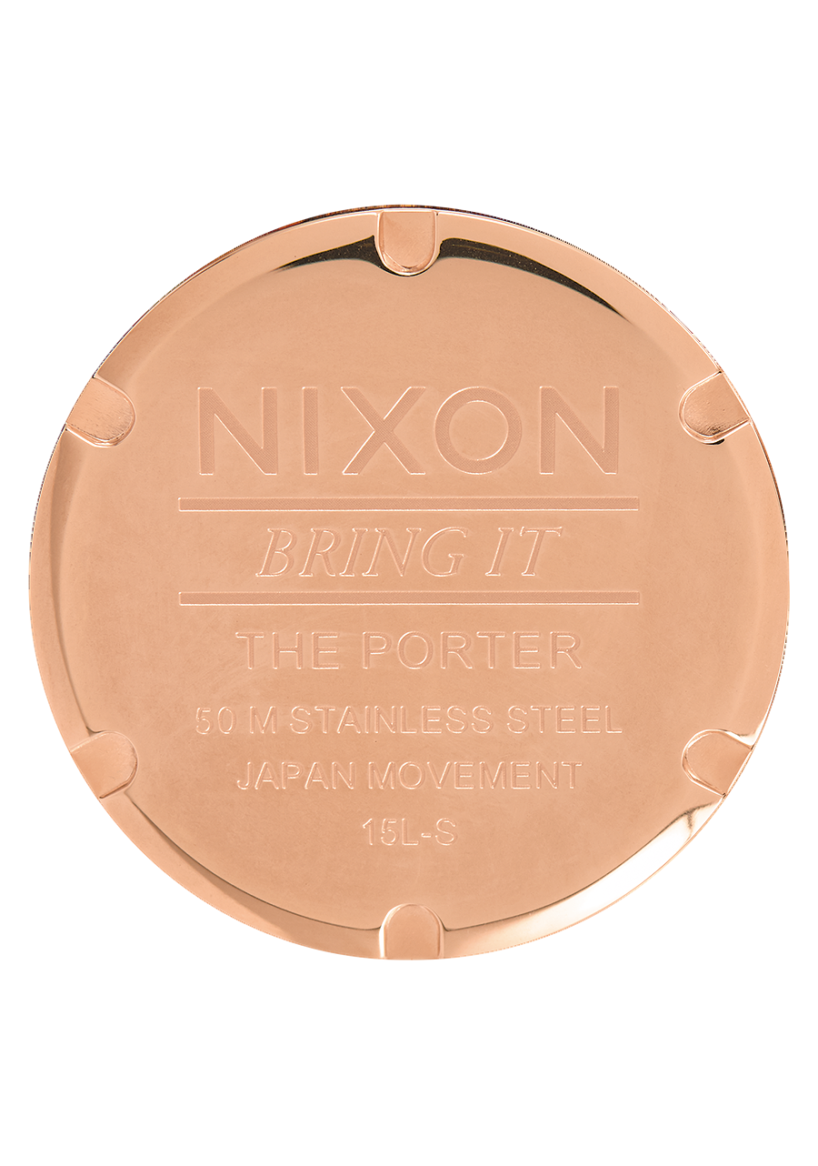 La cassa del Nixon Porter Leather è realizzata in acciaio inossidabile personalizzato, mentre il cinturino è in pelle. Per prendersi cura del cinturino in pelle, prima rimuovere la polvere con un panno in microfibra asciutto. Poi, inumidire leggermente il panno e pulire delicatamente lo sporco dal cinturino. Infine, lasciare asciugare all'aria il cinturino. Per ulteriori informazioni sulla pulizia dei cinturini in pelle, visita il nostro blog.