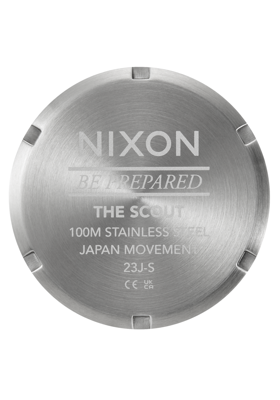 Aggiornamento di un classico stile Nixon, lo Scout è un orologio analogico di nuova concezione sempre pronto all'uso. Il suo resistente cinturino in nylon passante assicura una vestibilità ultra-robusta e una facile regolazione al polso. Inoltre, la solida costruzione della cassa quadrata e l'impermeabilità di 10 ATM/100 metri rendono lo Scout adatto a tutti gli ambienti, bagnati o asciutti. È resistente. Elegante. Sicuro.