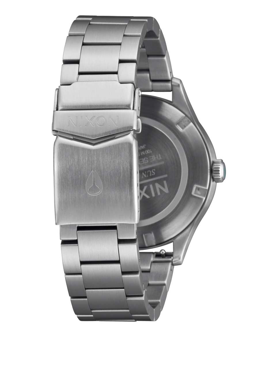 Cassa e fondello in robusto acciaio inox, sottoposti a prova di pressione con un grado di resistenza all’acqua di 10 ATM / 100 m. Bracciale rastremato in robusto acciaio inox da 20 o 18 mm con doppia chiusura deployante.