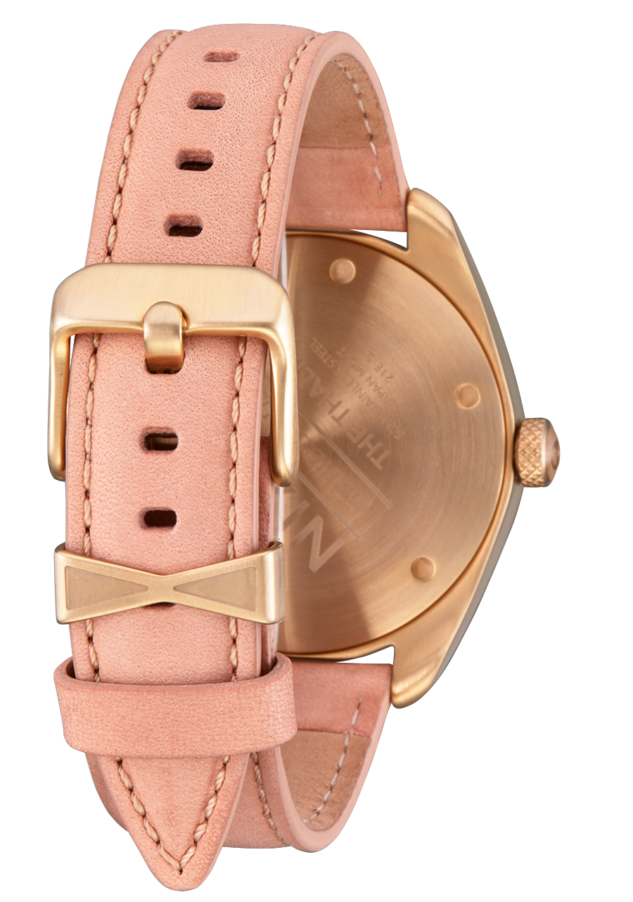 Dalla pelle conciata al vegetale alle cuciture esterne, alla banda in acciaio inossidabile personalizzata e alla fibbia Nixon incisa,la silhouette elegante di Thalia è una festa per gli occhi.