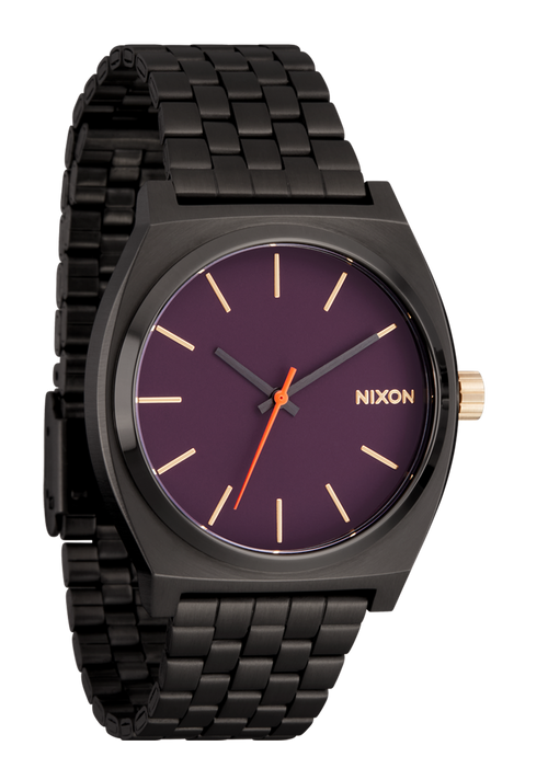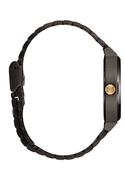 This collection elevates the traditional silver pairing by combining classic gold accents with a bold gunmetal case and stainless steel band. Then it cranks the dial all the way up with a deep and polarizing blackberry or lavender finish. It may be obvious already, but these watches are loud, respectfully.