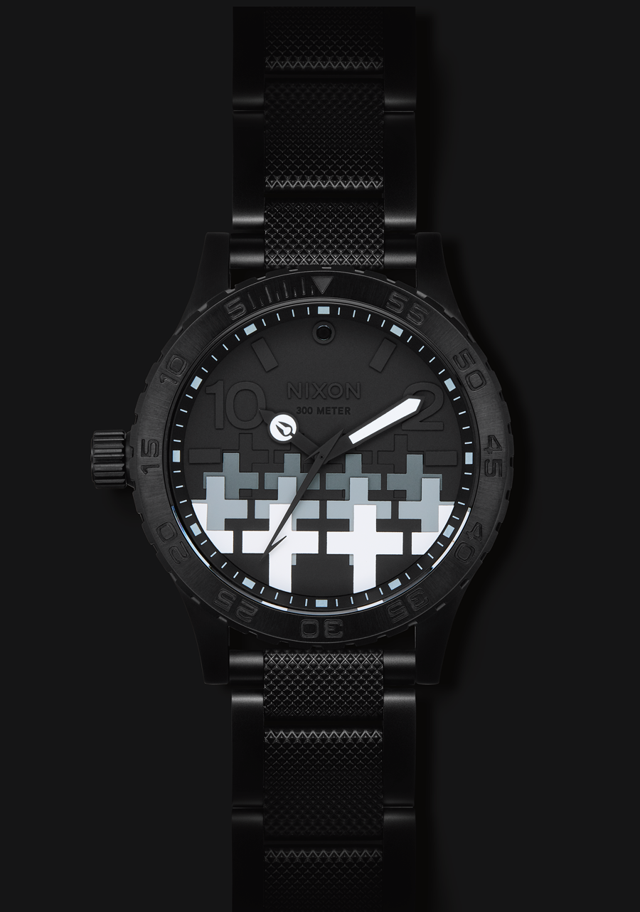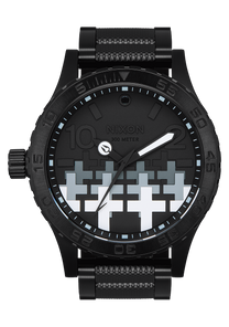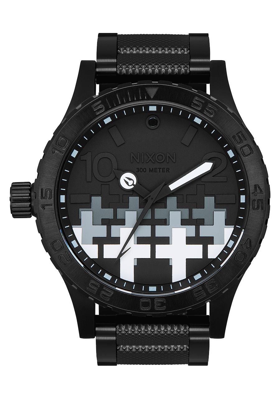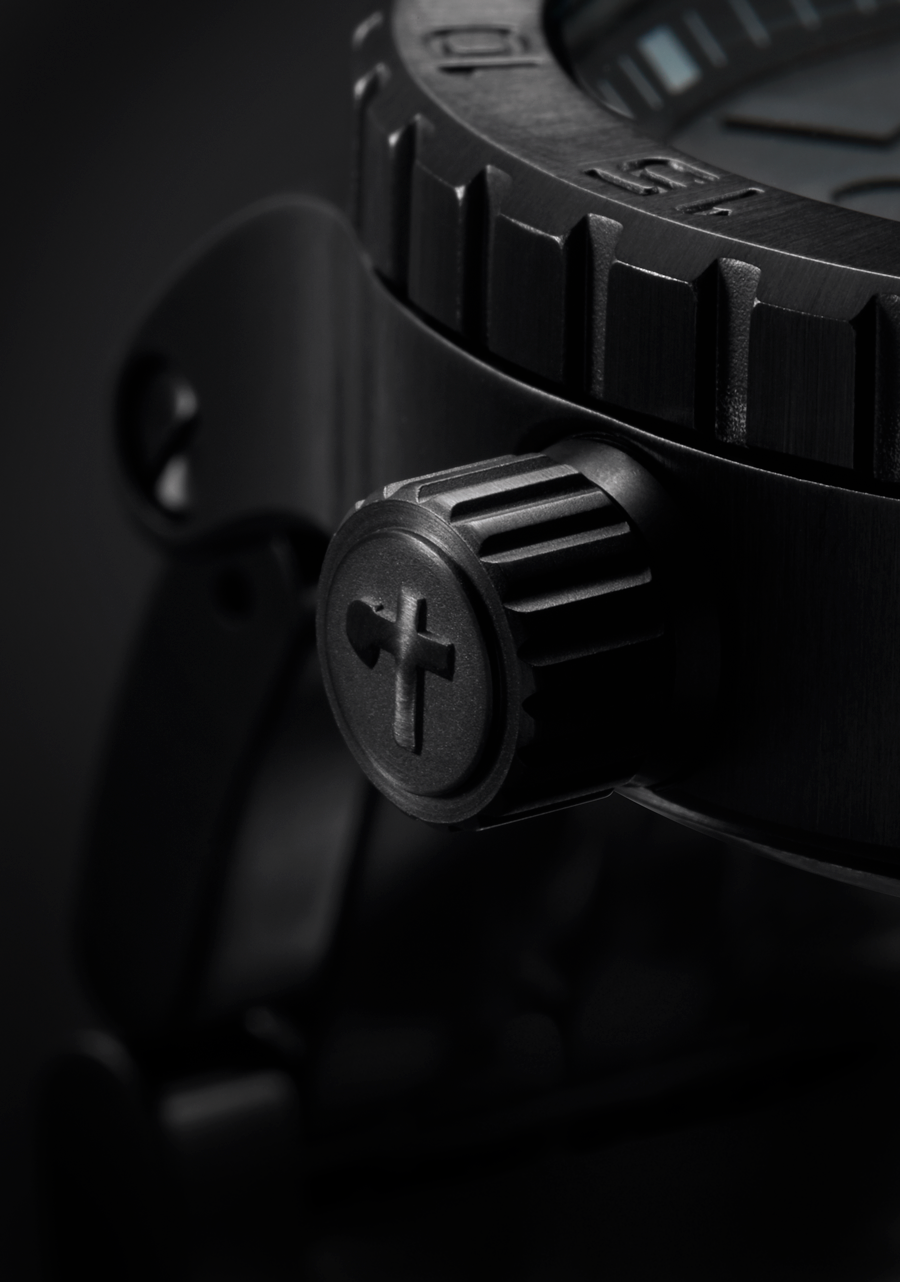 51 mm maßgefertigtes Gehäuse aus massivem Edelstahl mit einer Wasserdichtigkeit von 300 Metern / 30 ATM. Enthält eine einseitig drehbare Lünette mit Countdown-Timer, gehärtetes Mineralglas, verschraubte Krone, verschraubten Edelstahl-Gehäuseboden und verschraubte Bandanstöße.