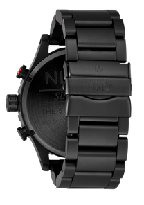 51 mm maßgefertigtes Gehäuse aus massivem Edelstahl mit einer Wasserdichtigkeit von 300 Metern / 30 ATM. Inklusive einseitig drehbarer Lünette mit Countdown-Timer, gehärtetem Mineralglas, verschraubter Krone und Drückern, verschraubtem Edelstahl-Gehäuseboden und verschraubten Bandanstößen.