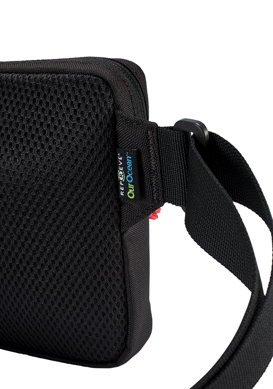 600D Polyester aus REPREVE® Our Ocean™ (aus recyceltem Ozeanplastik). Innenmaterial aus 70D Polyester aus REPREVE® (aus recyceltem Plastik)
